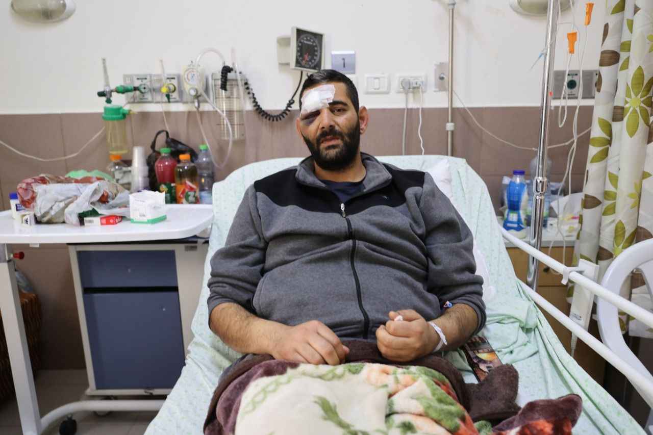 Alnına isabet eden kauçuk kaplı mermi nedeniyle sağ gözü şişerek kapanan üç çocuk babası 36 yaşındaki Mescid-i Aksa Muhafızı Hussam Sıdr, cuma sabah namazında görevini yapmak üzere Aksa'ya geldiğini söyledi.