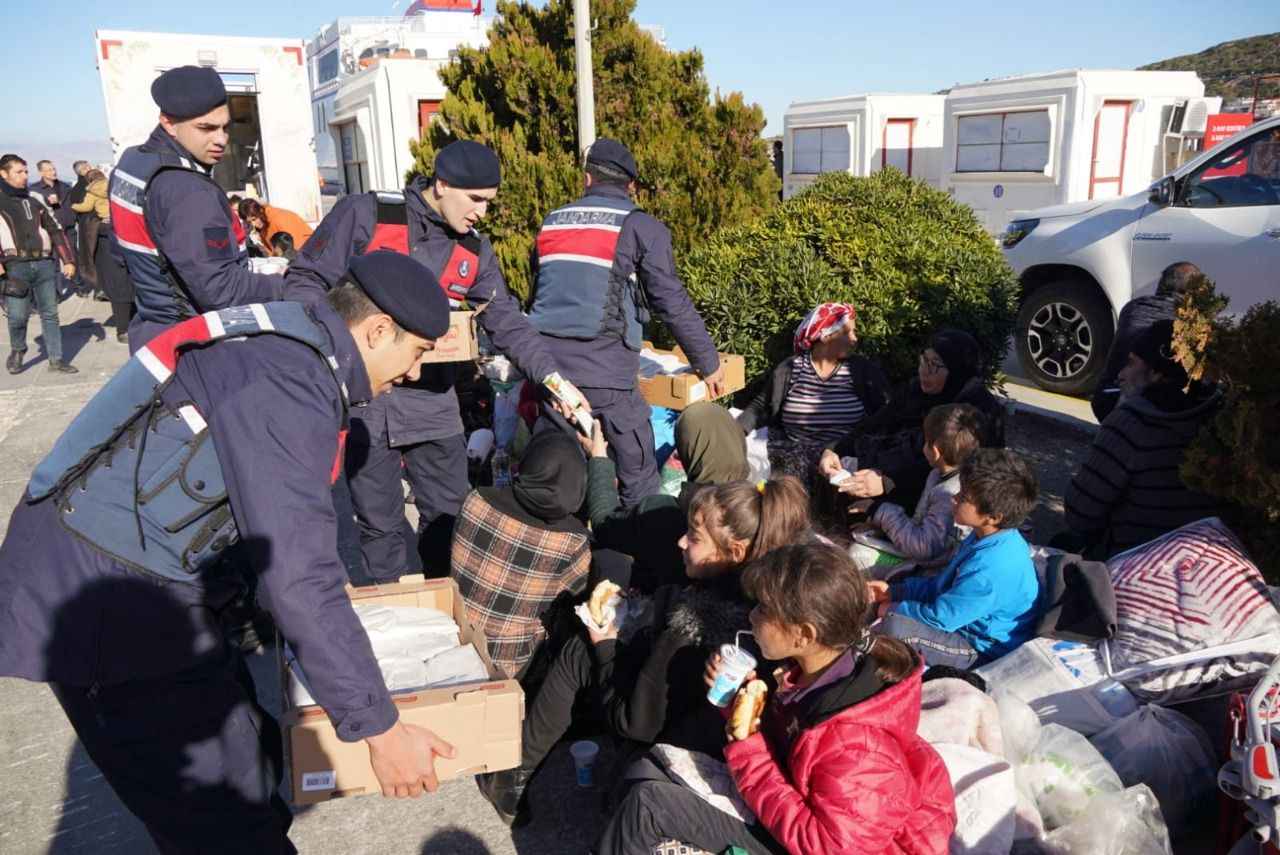 Çeşme Kaymakamı Mehmet Maraşlı, Çeşme Belediye Başkanı Ekrem Oran ile jandarma ve sağlık ekiplerinin karşıladığı depremzedelerin sağlık kontrolleri de gerçekleştirildi.