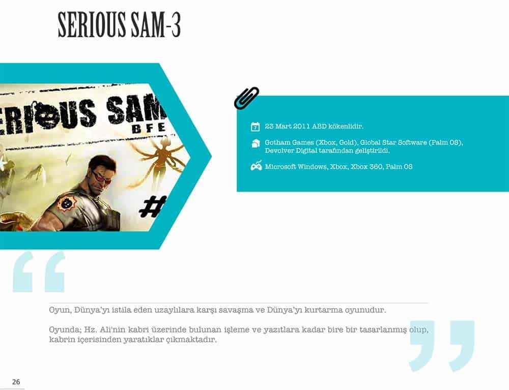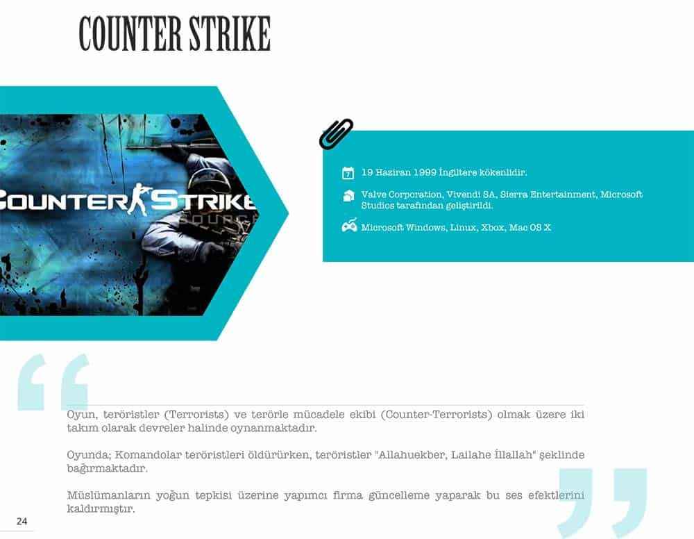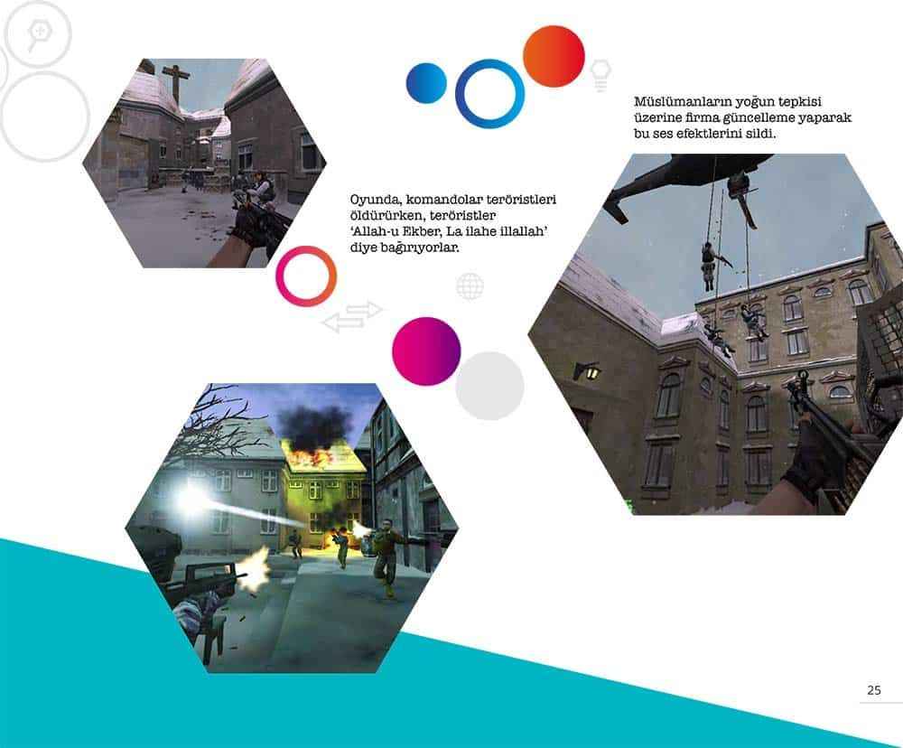 Bu oyunlar; insanların İslam’ı Allah’tan geldiği gibi tanımalarına engel teşkil etmektedir. Bu piyasada üretilen dijital oyunlarda yaratılan imaj; Müslüman cinayet işliyor, Müslüman Müslüman’ı öldürüyor, araba çalıyor, hırsızlık yapıyor, kadın tüccarlığı yapıyor, zina yapıyor.