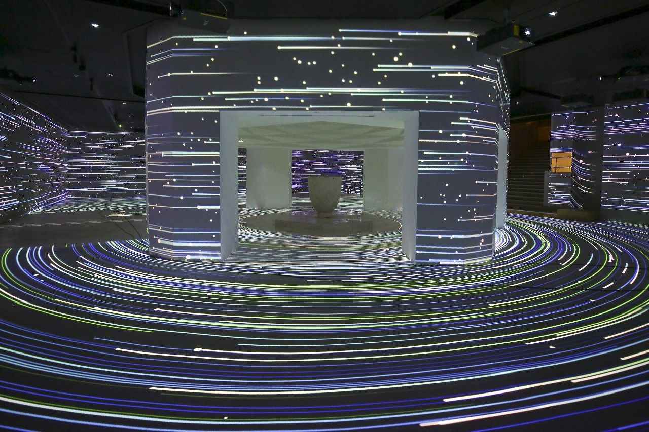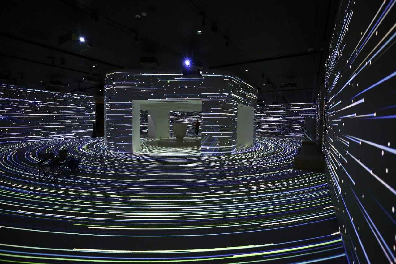 Olağanüstü bir görsel şölen niteliğindeki enstalasyonda, İslam medeniyetinin suya atfettiği mana derinlemesine hissettiriliyor. Allah'ın "Hayy" isminden ilham alınarak hazırlanan sunumda, ayetlerle suyun gücü ve hayattaki yeri anlatılıyor.