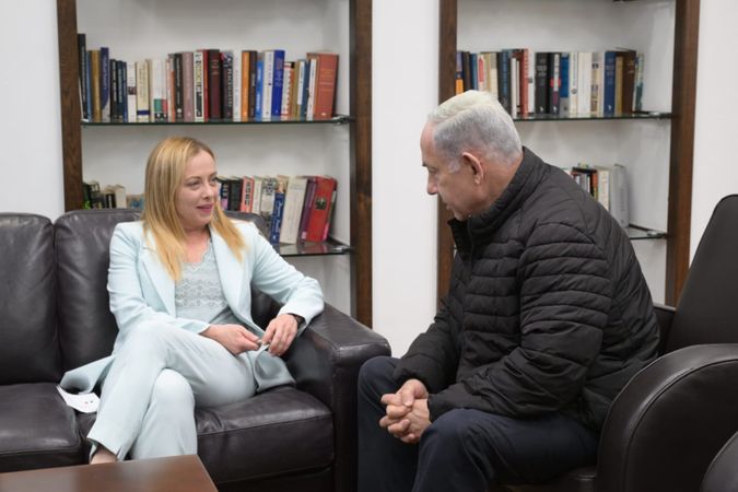 İtalya başbakanlığı yaptıkları görüşmeye dair " Başbakan (Meloni), İsrail'in uluslararası hukuka göre kendisini savunma ve barış içinde yaşama hakkına sahip olduğunu yinelerken Gazze'ye insani erişimin garanti altına alınmasının ve bölge için barış ihtimalinin öneminin altını çizdi" açıklamasında bulundu.