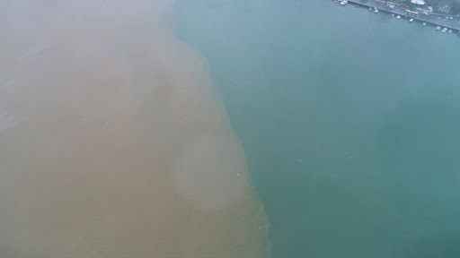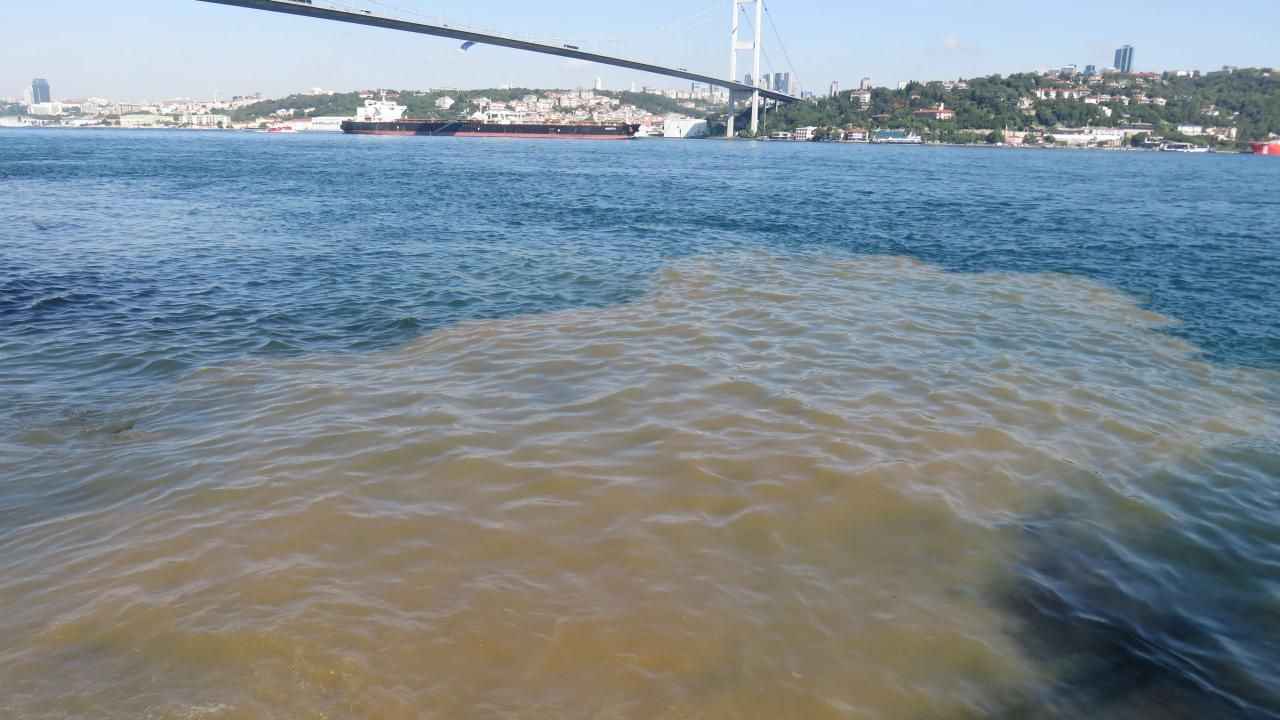Kahverengiye dönen deniz havadan da görüntülendi.