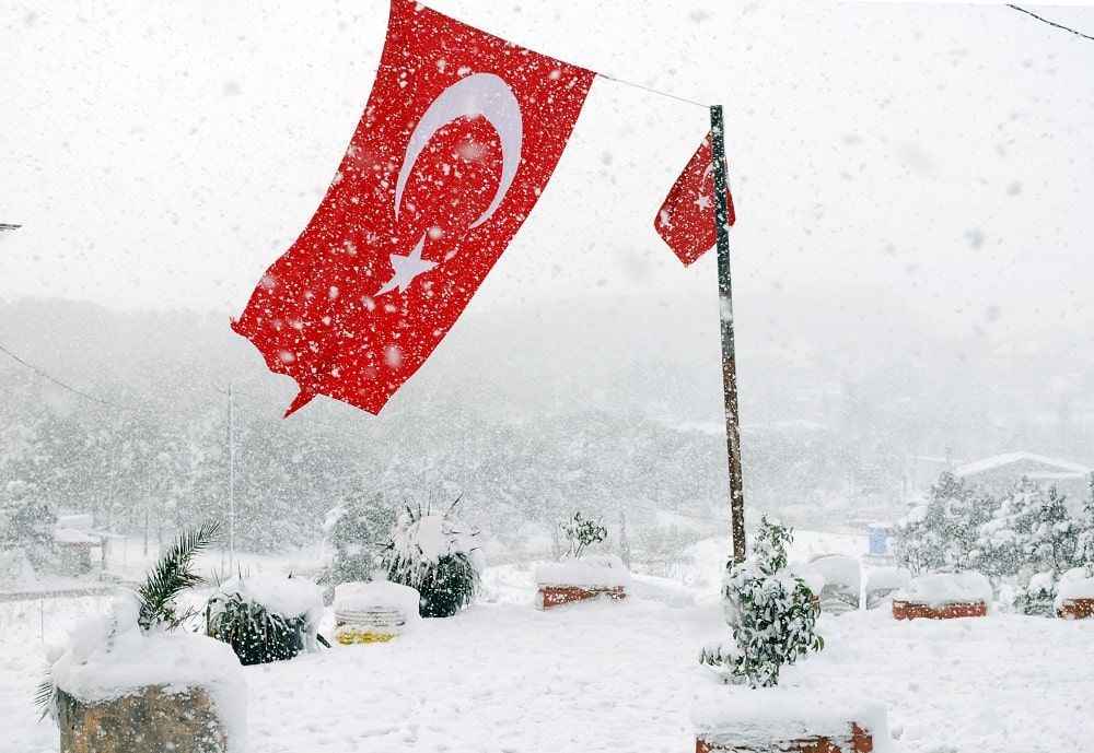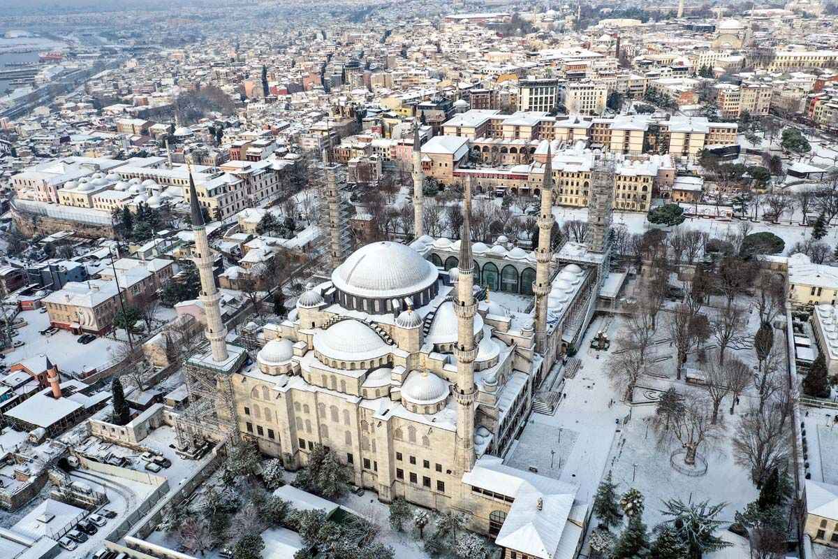 Karla kaplanan Sultanahmet Camii ise şehrin güzelliğine güzellik kattı.