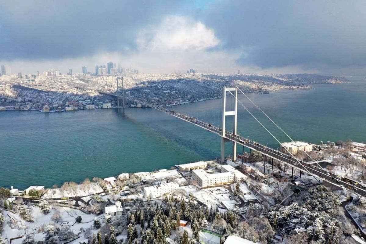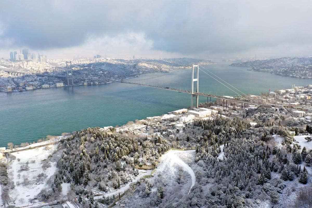 İstanbul'daki kar yağışı kentin önemli noktalarında eşsiz manzaralara sahne oldu. 15 Temmuz Şehitler Köprüsü karla birlikte doyumsuz bir seyir oluşturdu.