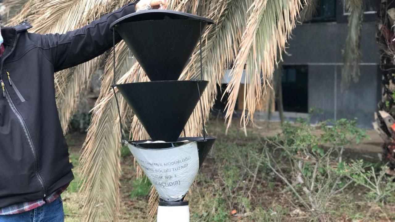 Uçtuğu an 900 metre kadar uzaklığa gidebiliyor ve gittiği ağaçları tekrar tekrar enfekte edebiliyor. Bizlerde bu durumu önlemek için daha çok kış döneminde kırmızı palmiye böceği ile mücadele ediyoruz. Çünkü bir tane ergin dişi 300 adet yumurta bırakabiliyor" dedi.