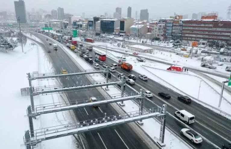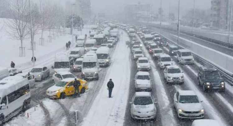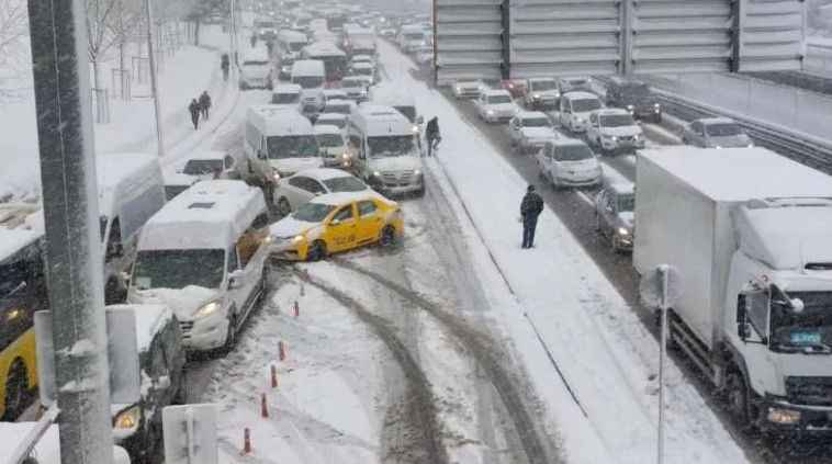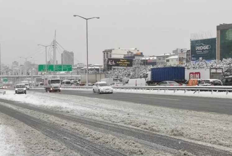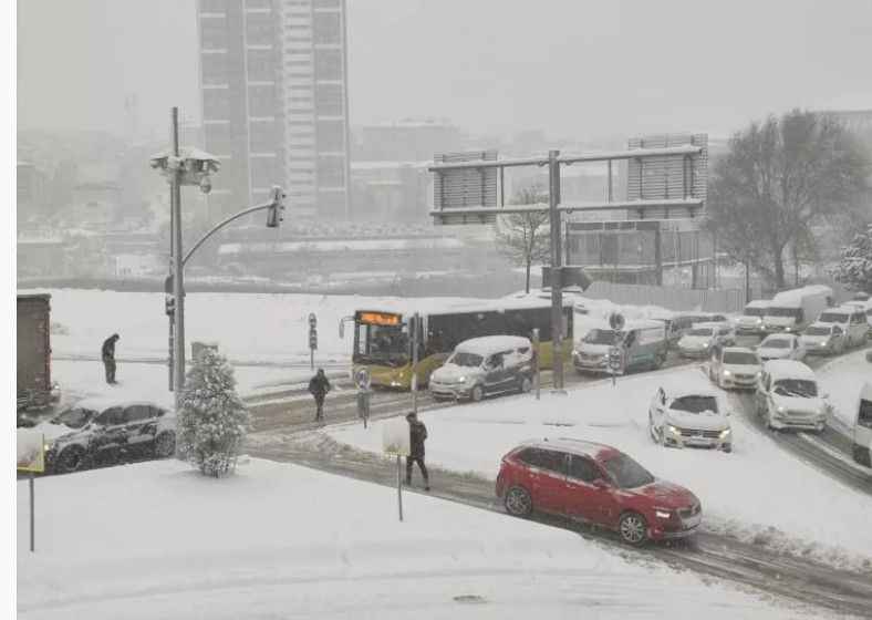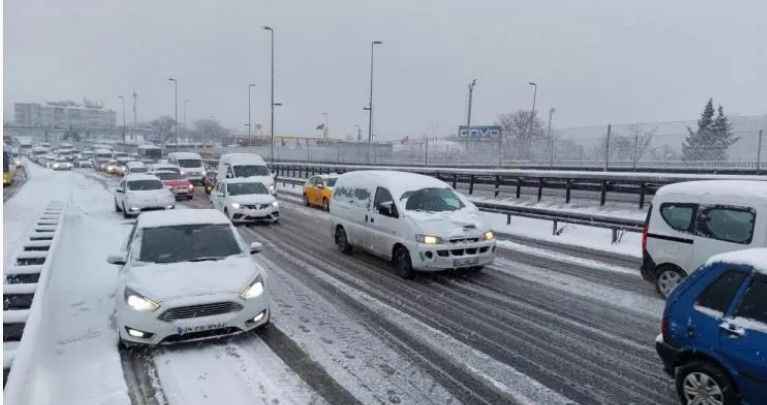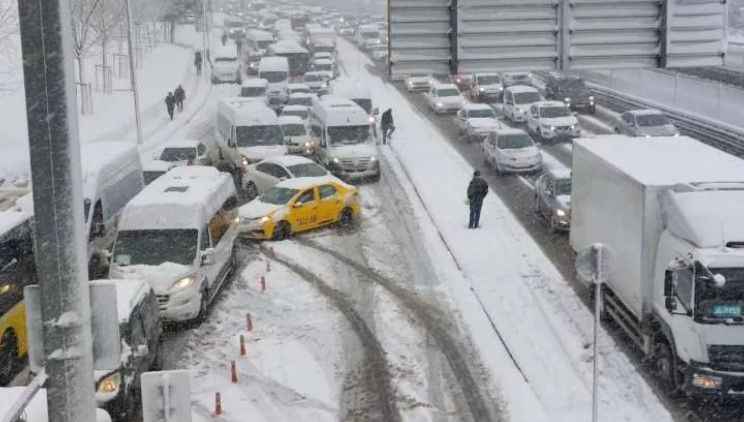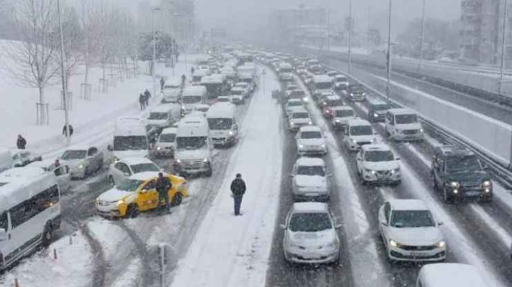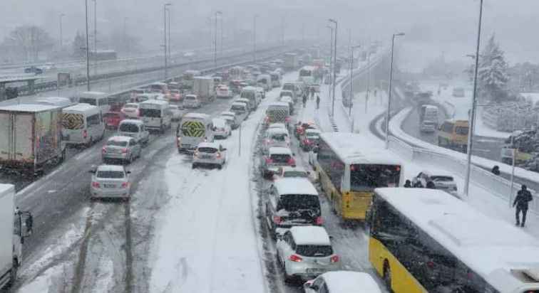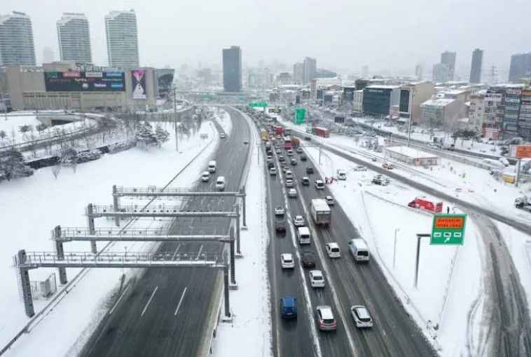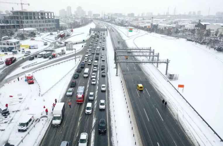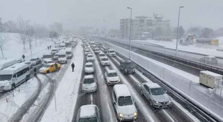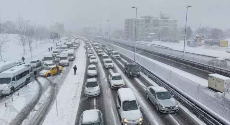 İstanbul'da etkili olan kar yağışı trafiği olumsuz etkiledi. Küçükçekmece E-5 Topkapı istikametinde trafik durma noktasına geldi. Trafik yoğunluğu dron ile havadan görüntülendi.