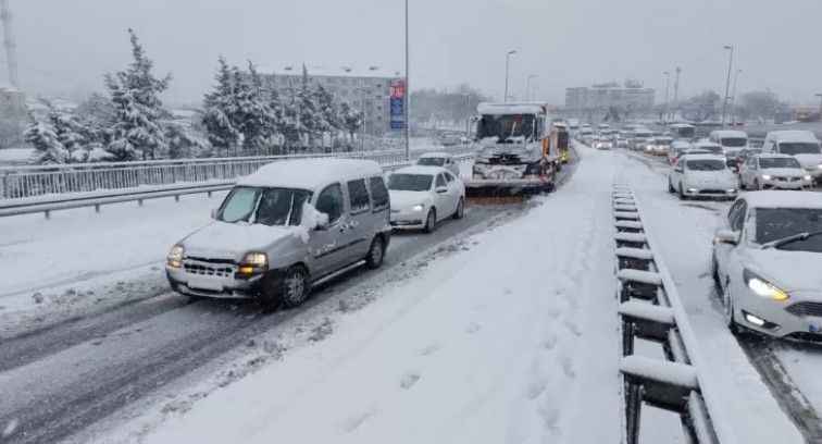 TEM otoyolunun Mahmutbey Gişeleri Edirne istikameti bölgesinde yoğunlaşan trafik karın etkisini artırmasıyla durdu.