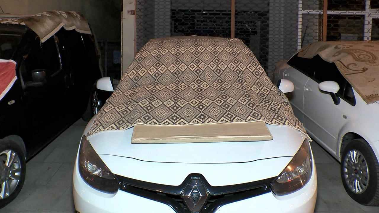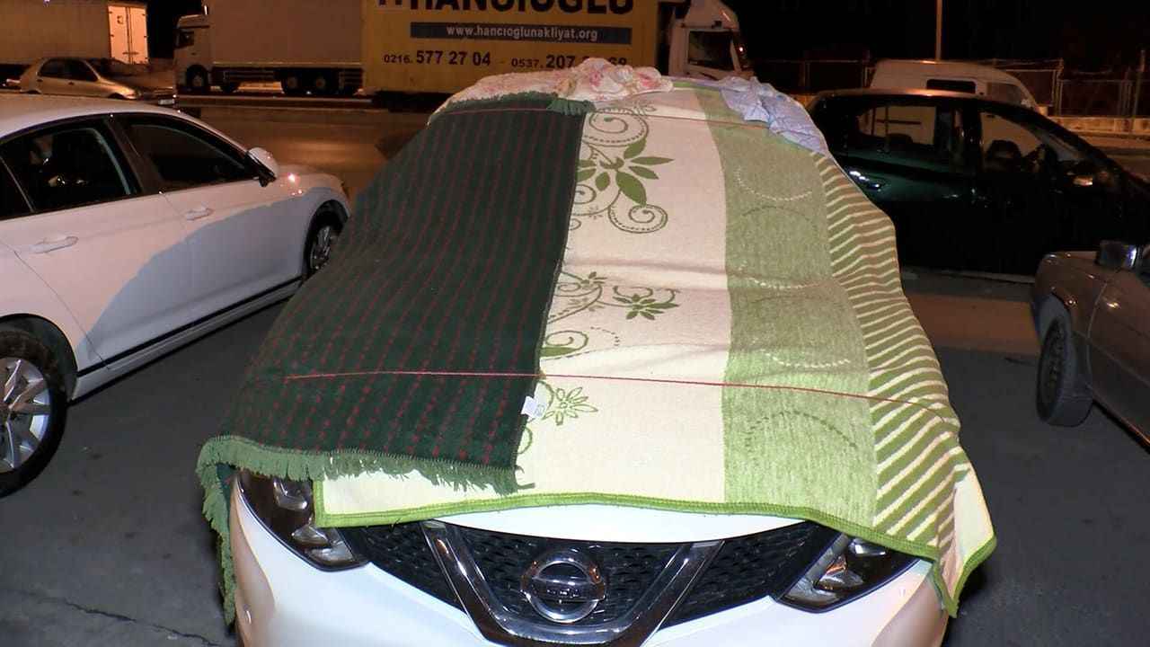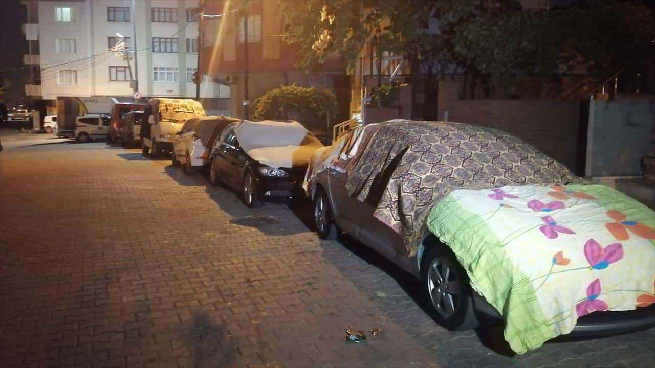 İstanbul'da araç sahipleri bugün yağması beklenen doluya karşı araçlarını evlerinde bulunan halı, battaniye, branda ve dışarıdan aldıkları inşaat malzemeleri ile korumaya aldı.