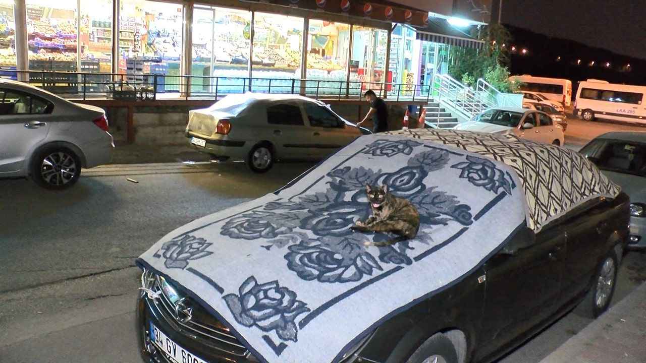 Bu durum en çok sokak kedilerine yaradı. Araçların üzerine serilen yumuşak halı ve battaniyelerin üzerinde yatan kediler gülümseten görüntüler oluşturdu.