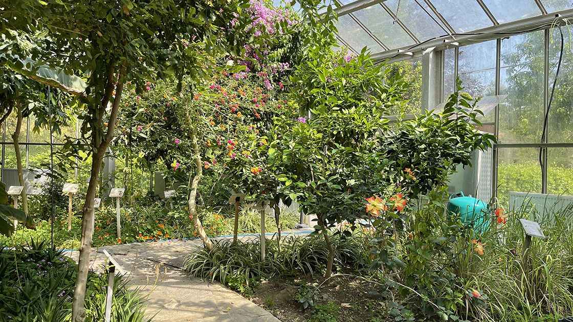 Adacıklardan oluşan ve her bölümde farklı türlerin yetiştirilmesine uygun koşulların oluşturulduğu bahçede, sıcak ve ılıman iklim bitkilerinin yer aldığı serada, yurt içi ve yurt dışından getirilen 90'ı aşkın tür bulunuyor.