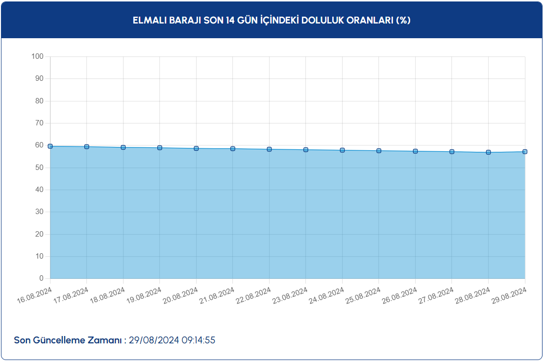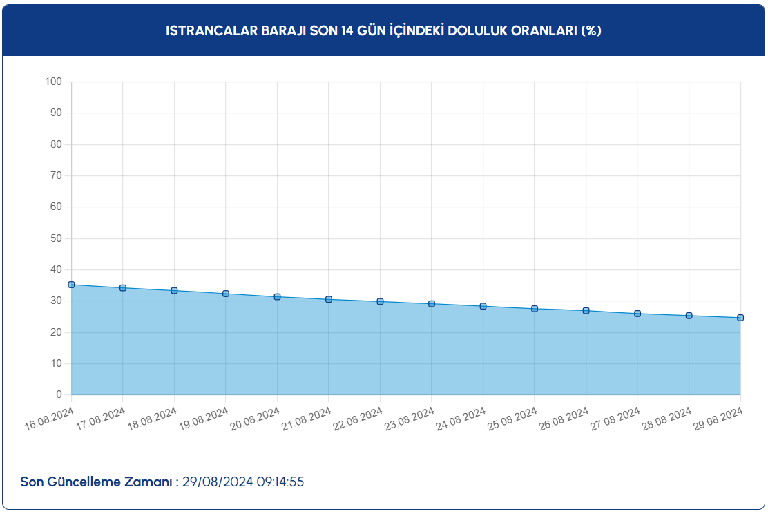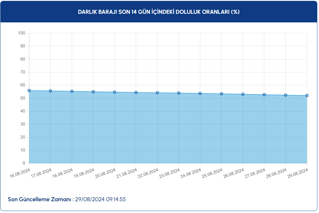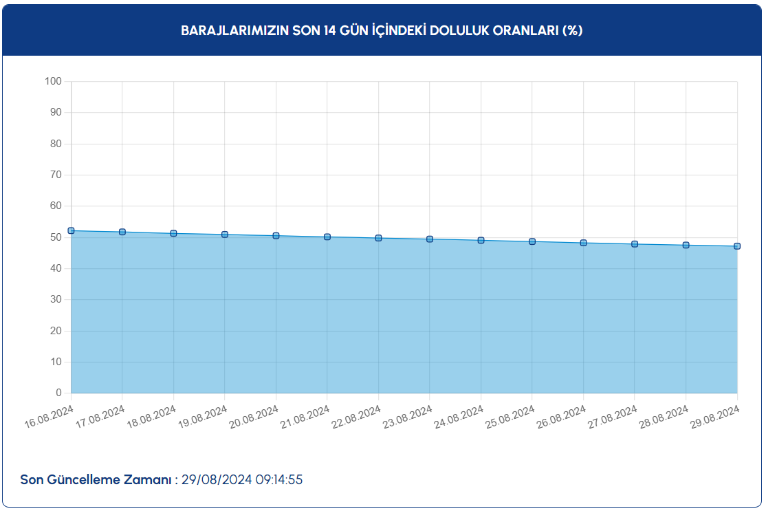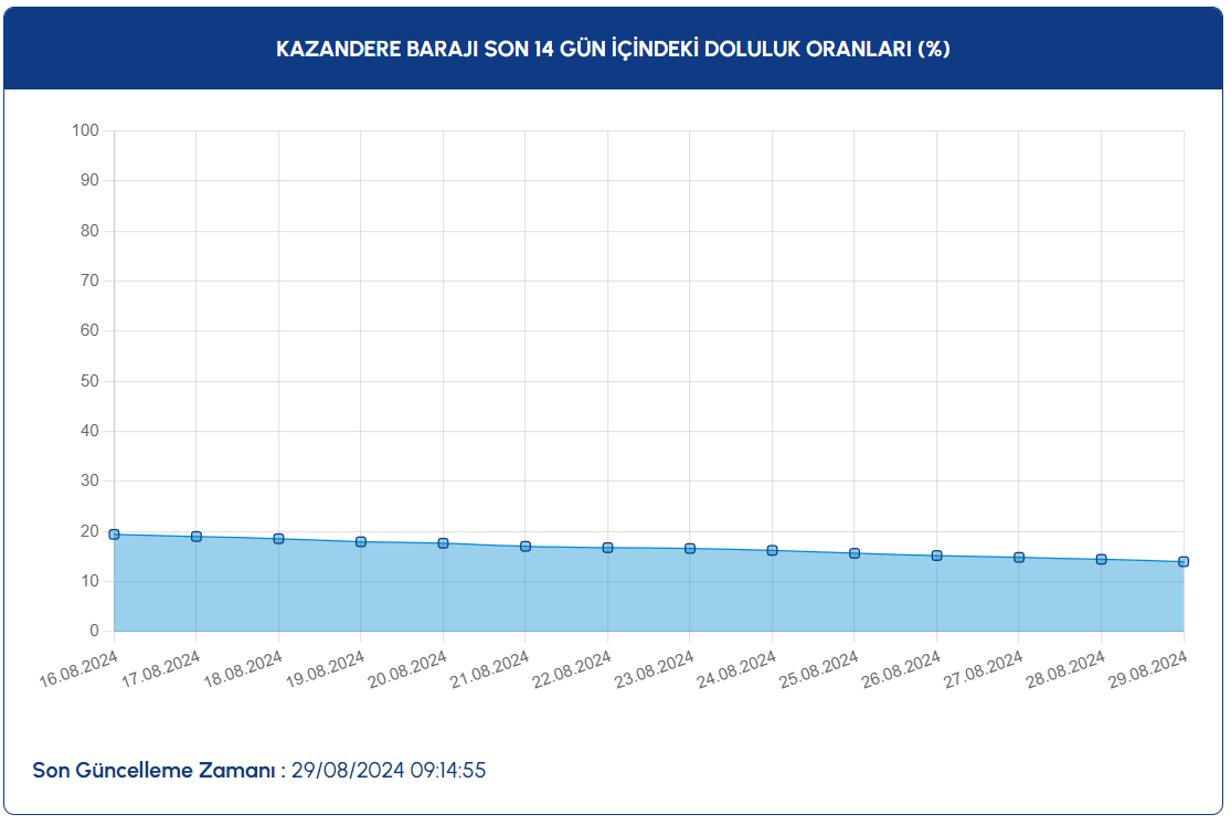 Son 14 gün içindeki baraj doluluk oranlarında düşüş gözlemlenmekte.