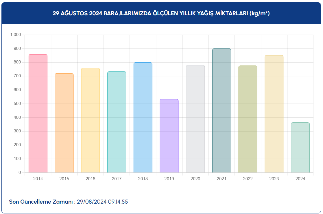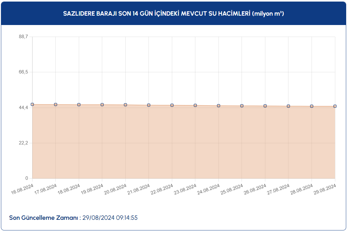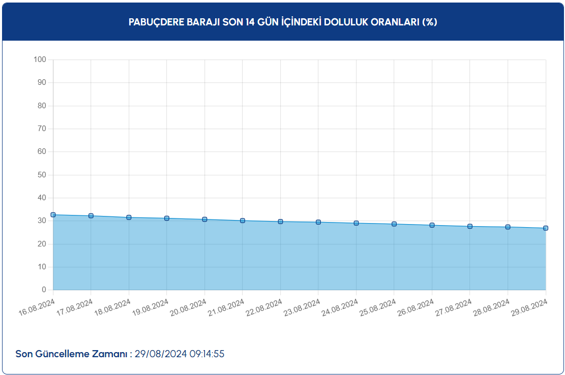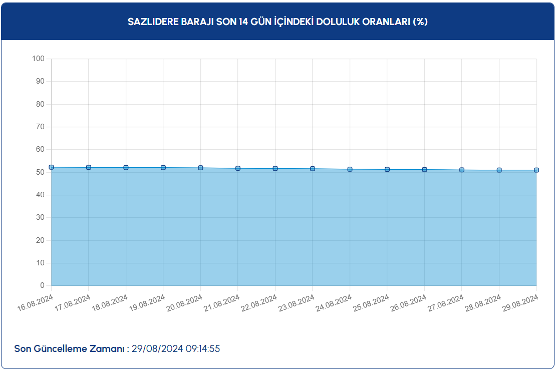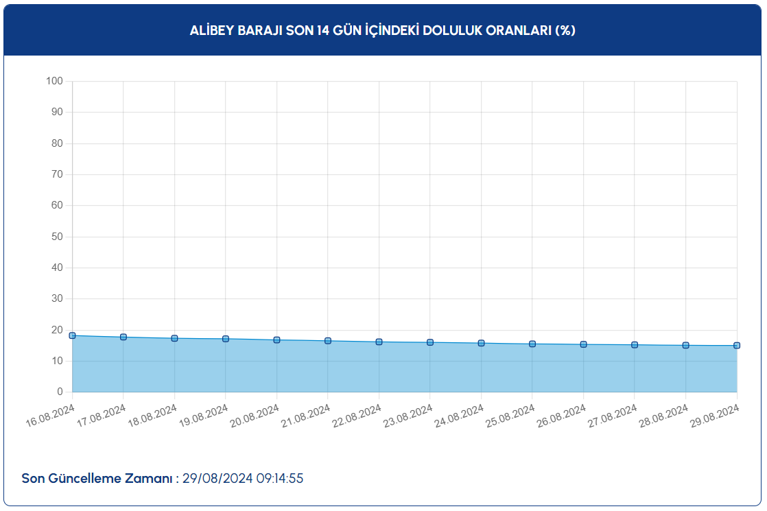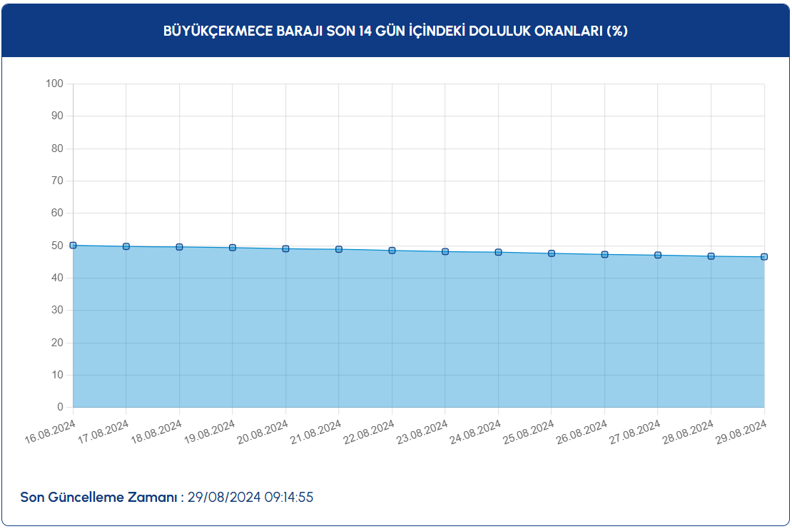 Son 14 gün içindeki baraj doluluk oranlarında düşüş gözlemlenmekte.