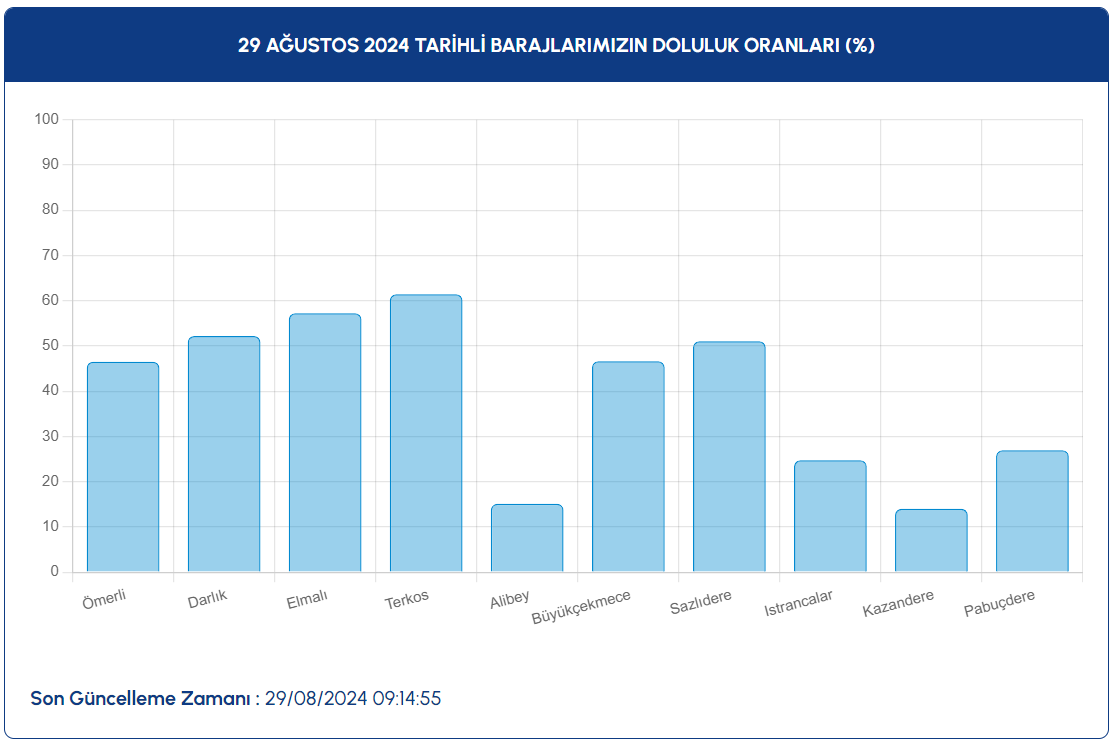 İSKİ’nin son raporuna göre 29 Ağustos barajlardaki doluluk oranları: