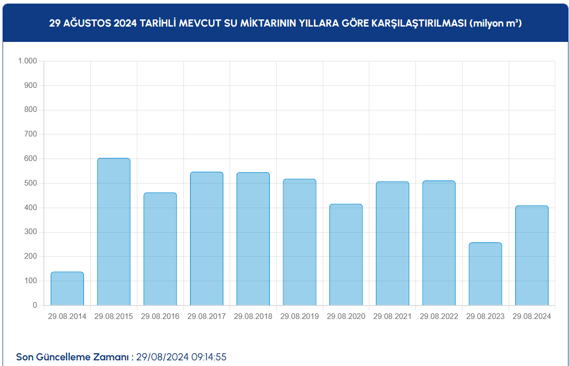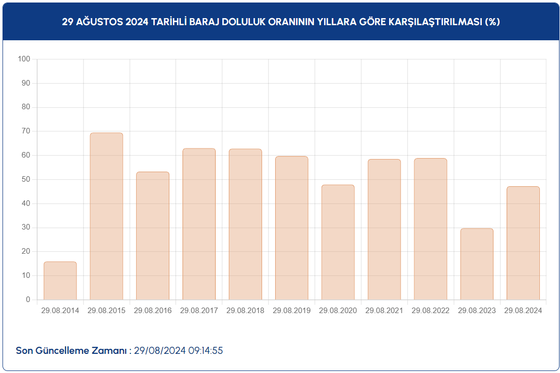 Bir önceki yılın aynı ayına göre baraj doluluk oranı yüksek seviyede görünüyor.
