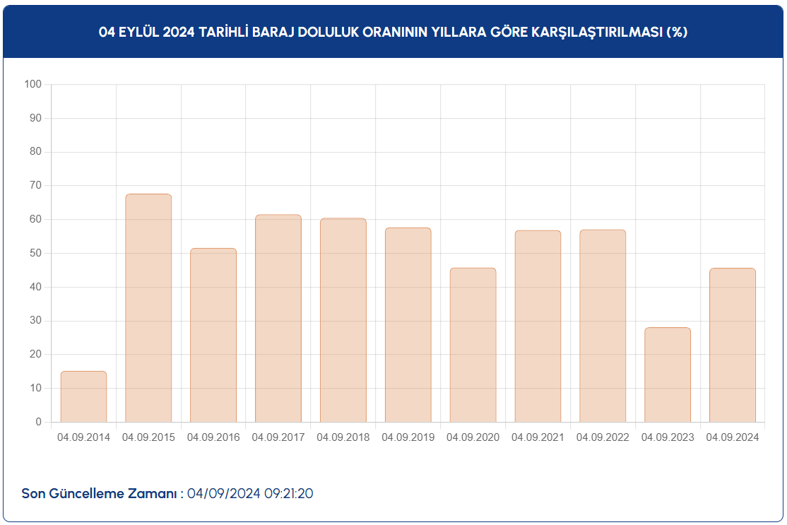 Bir önceki yılın aynı ayına göre baraj doluluk oranı yüksek seviyede görünüyor.