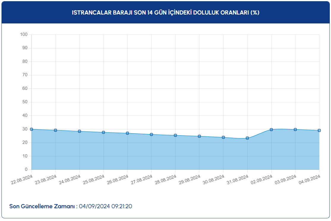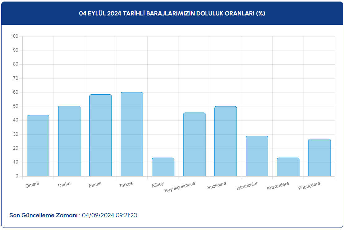 İSKİ’nin son raporuna göre 4 Eylül barajlardaki doluluk oranları: