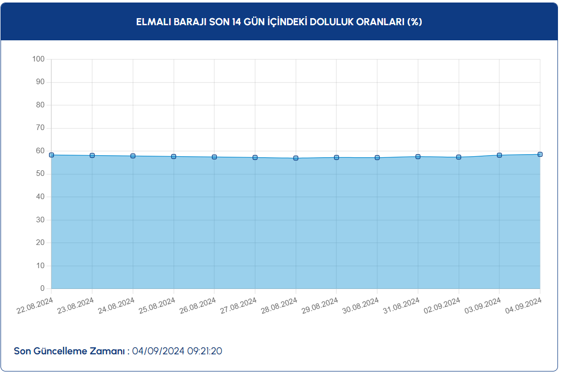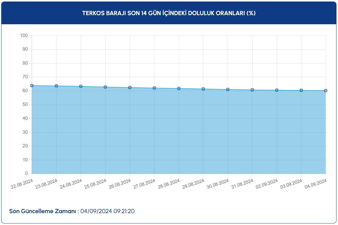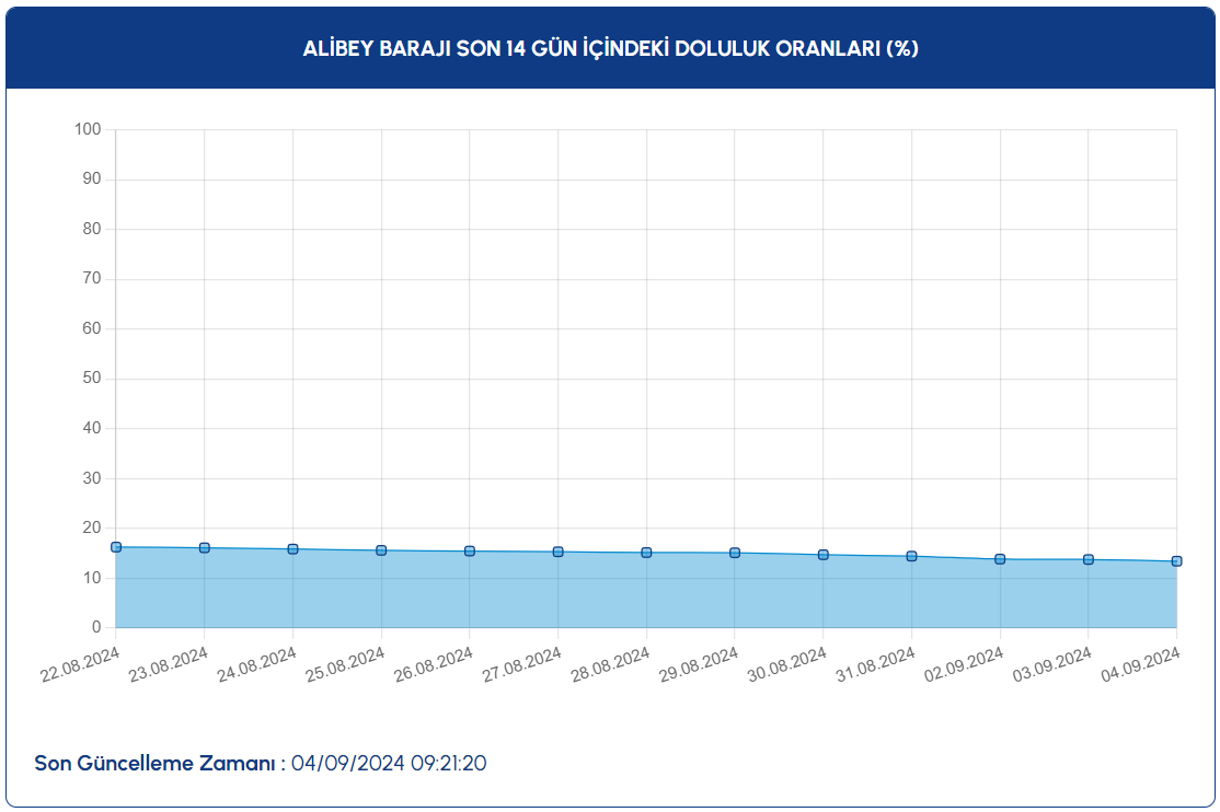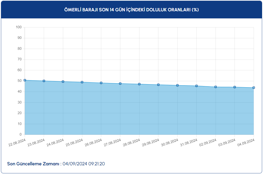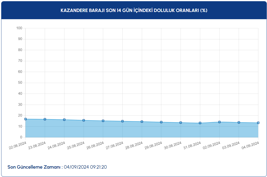 Son 14 gün içindeki baraj doluluk oranlarında düşüş gözlemlenmekte.