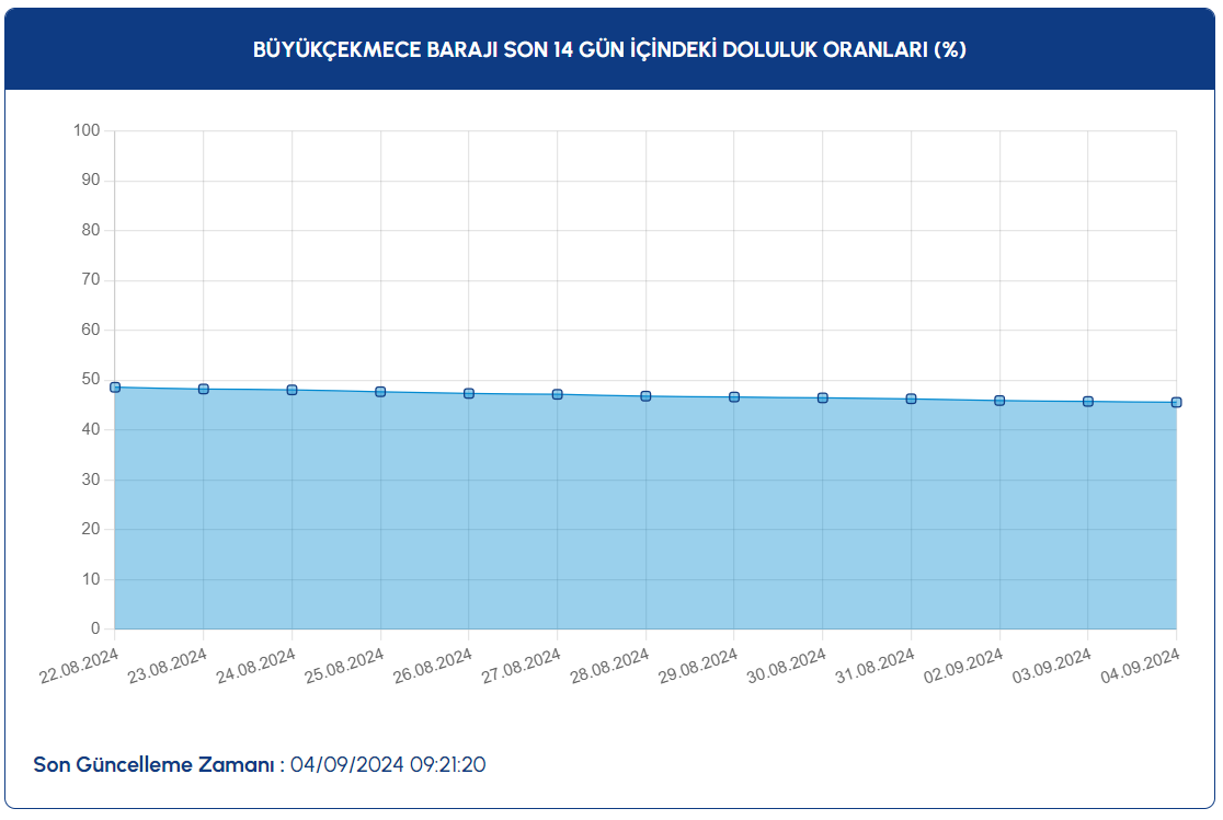 İstanbul'daki barajlarda doluluk oranını yüzde 45.76 olarak kaydedildi.