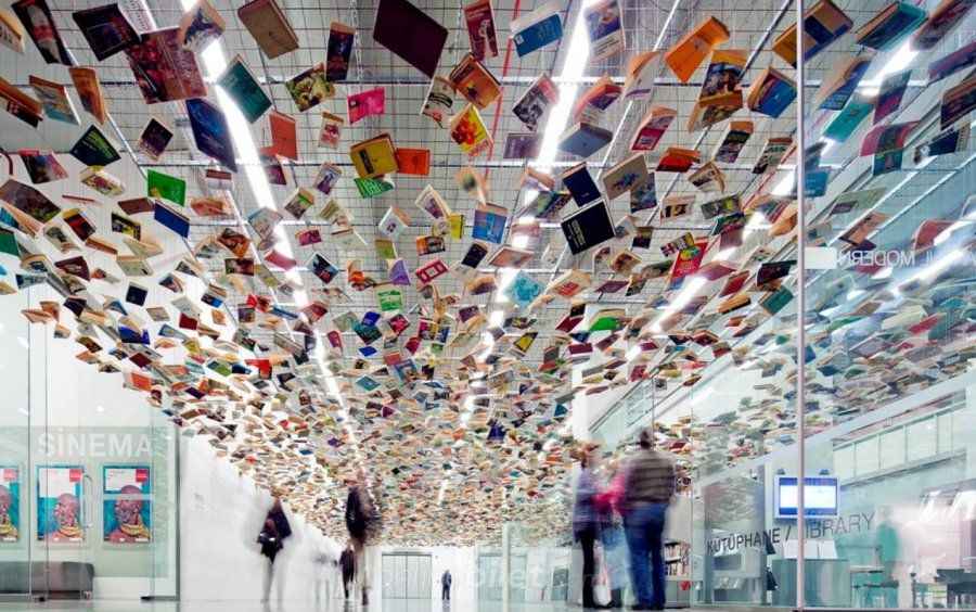 Pazartesi günleri dışında bu kütüphanede sanat ile bir araya gelebilirsiniz. Kütüphaneden ziyade sergi unsuru olması burayı keyifli bir mekan haline getiriyor.