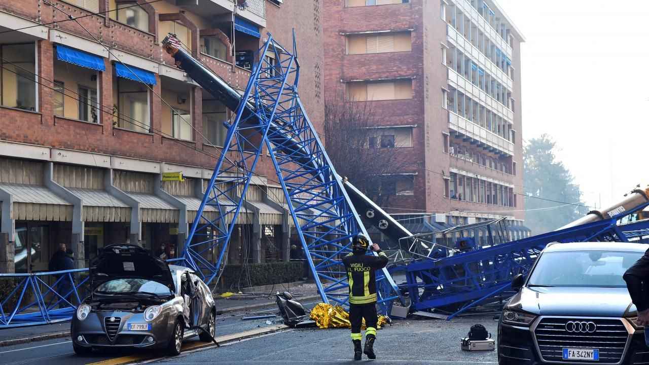 İtalyan haber ajansı ANSA'nın haberine göre, Torino kent merkezindeki Cenova Caddesi'nde 7 katlı bir binanın çatısı ve dış cephesindeki tadilat için kurulan vinç, sabah saatlerinde devrildi.