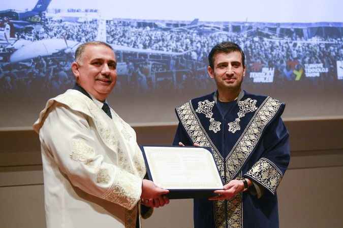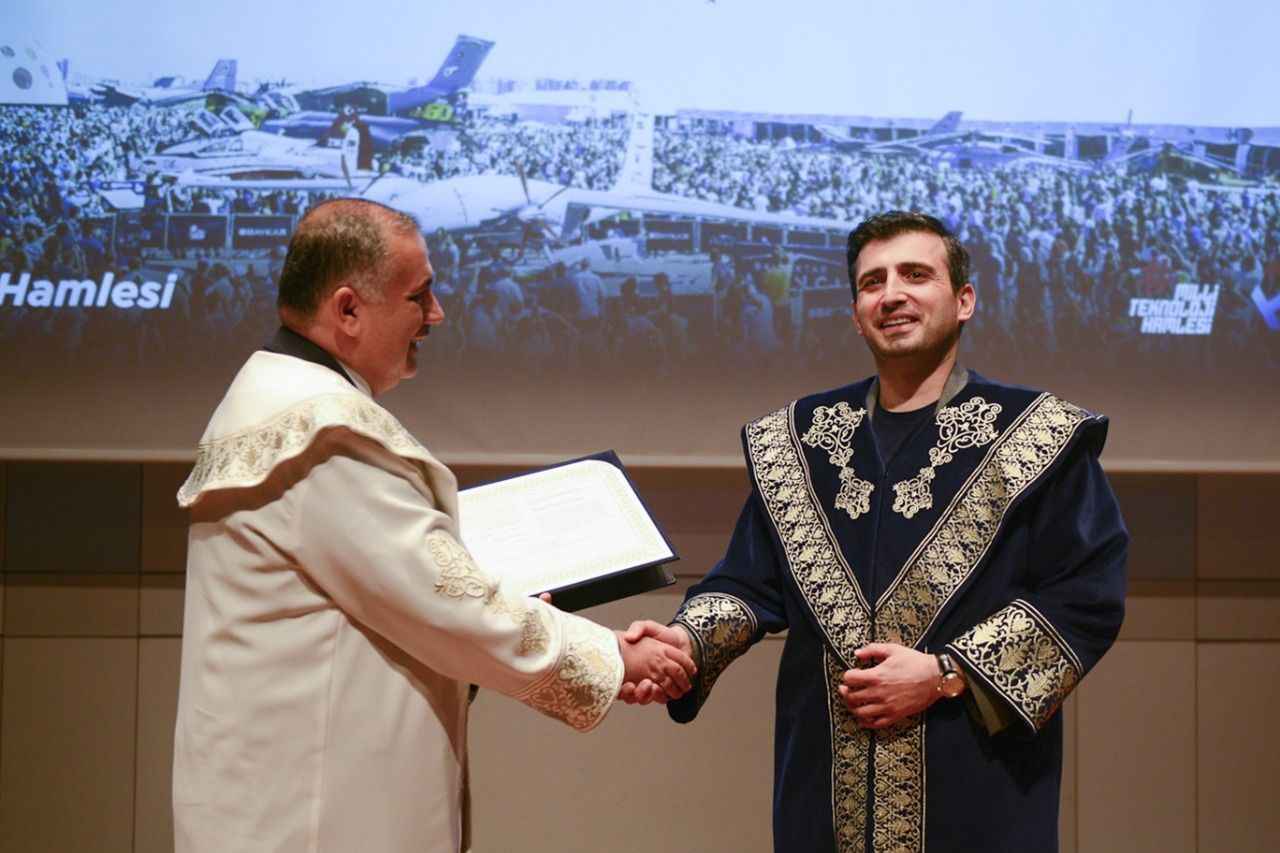 Söyleşinin ardından gerçekleştirilen törende Bayraktar'a, yapmış olduğu üst düzey araştırma ve geliştirme faaliyetleri sonucunda ortaya çıkan ürünleriyle bilimin ve teknolojinin ilerlemesine katkıda bulunduğu, Türk teknolojilerinin dışa açılması sonucu teknik ve ekonomik gücün uluslararası düzeyde etkinlik kazanmasına imkan sağladığı, mesleğindeki çalışmalarında üstün başarısını kanıtladığı için fahri doktora unvanı verildi.