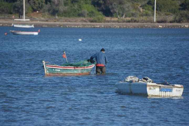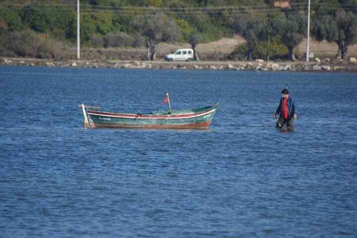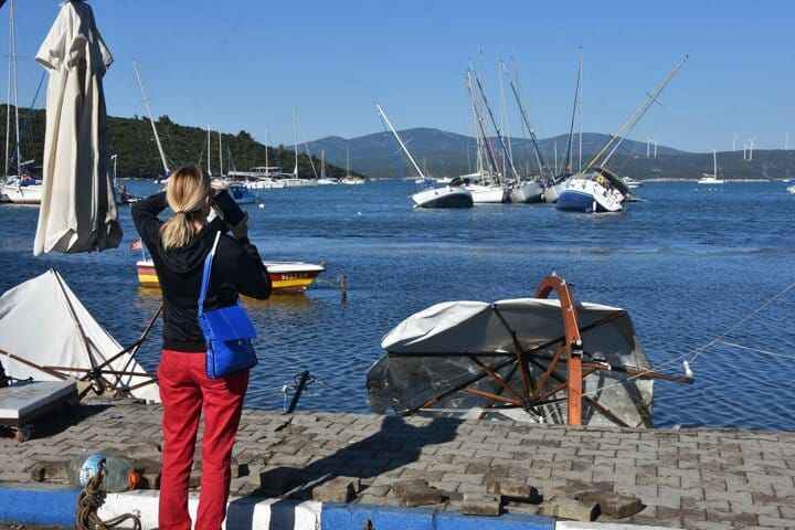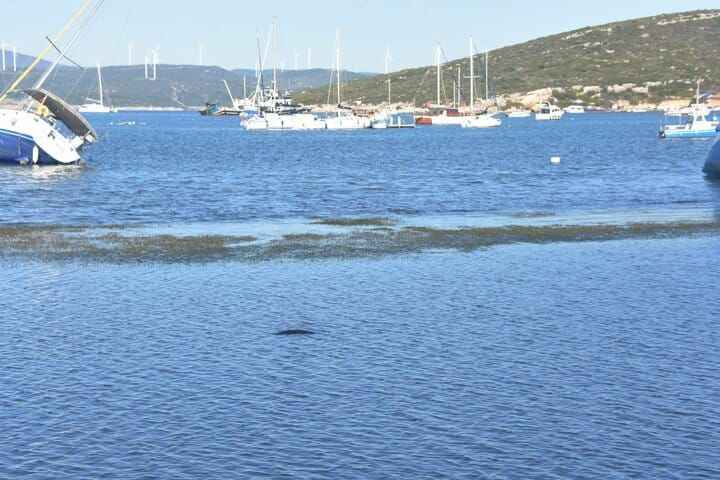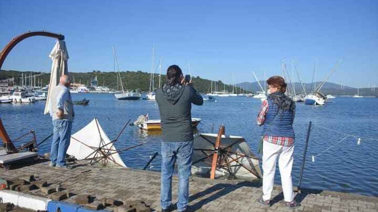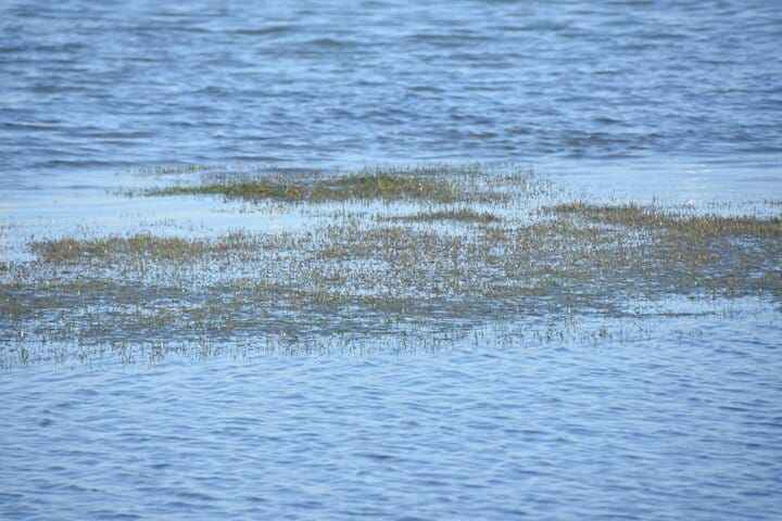 Seferihisar Sığacık'ta sabah saatlerinde gel-git başladığı görülürken, suyun dibinde bulunan otlar ve yosunlar suyun yüzeyine çıktı.