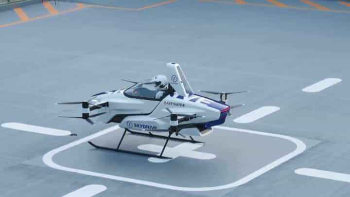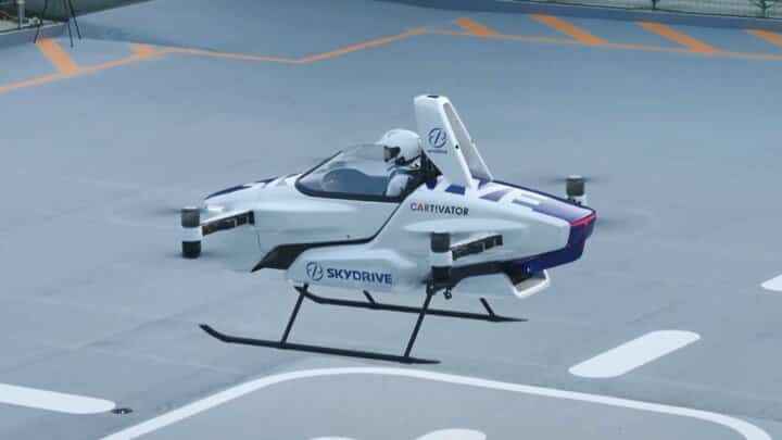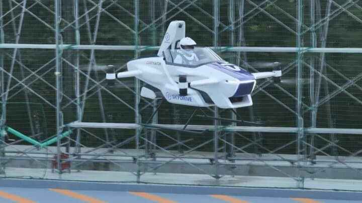 Japonya'da uçan arabanın yolculu deneme uçuşu yapıldı. Aracın yerden 1-2 metre yükseldiği ve ağla kaplı bir alanda 4 dakika boyunca havada kaldı.