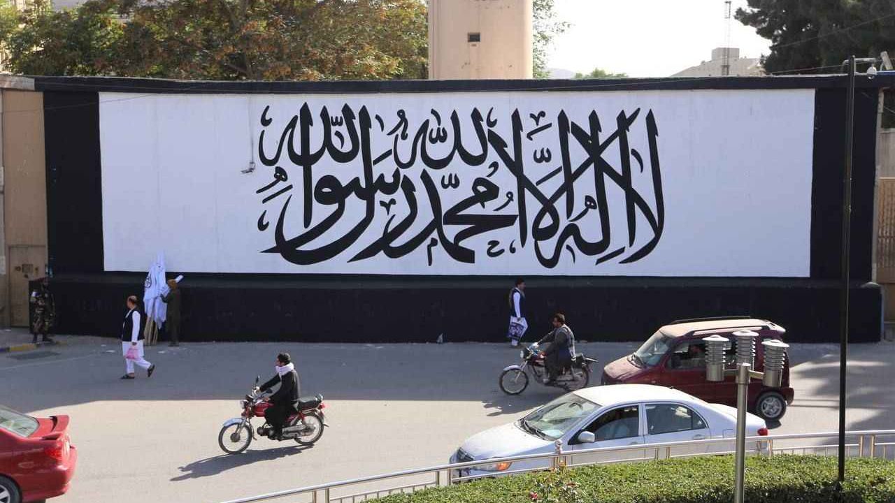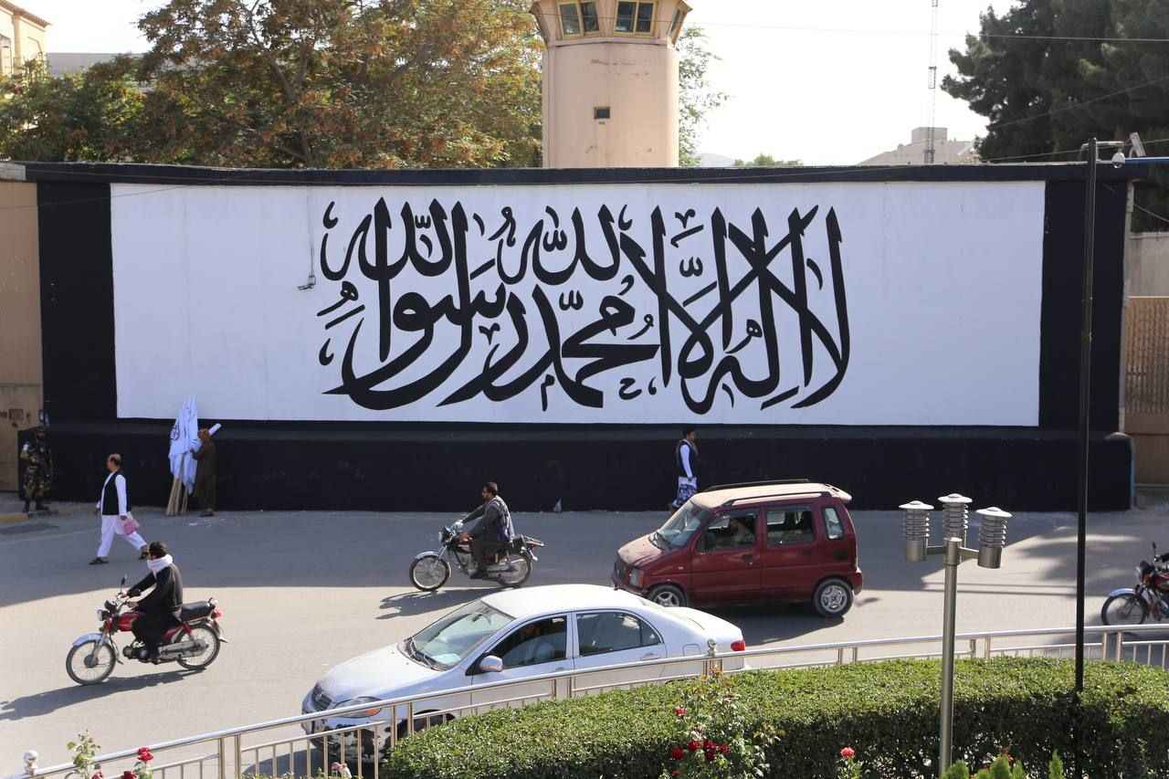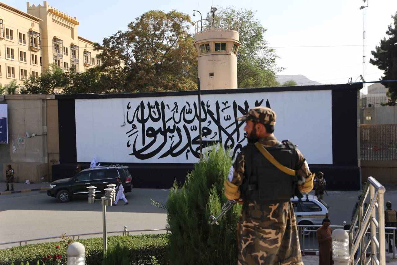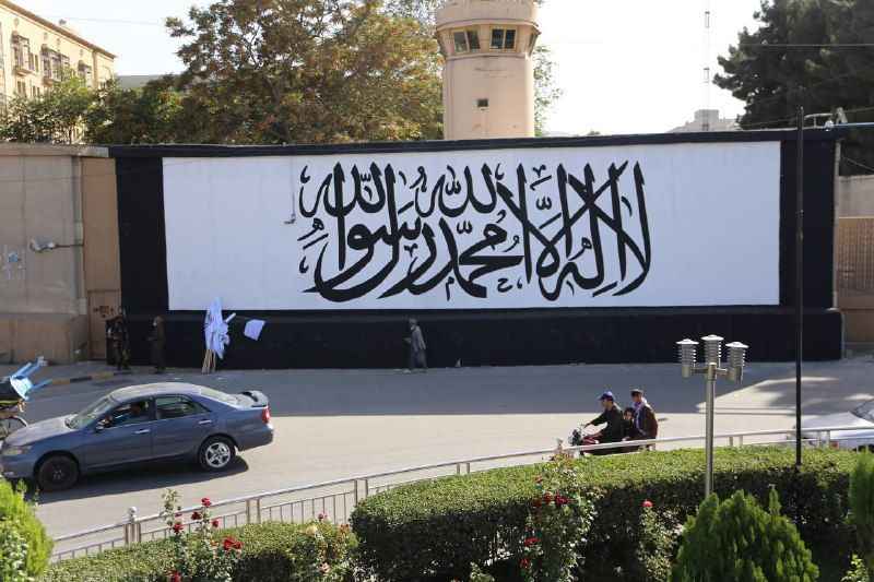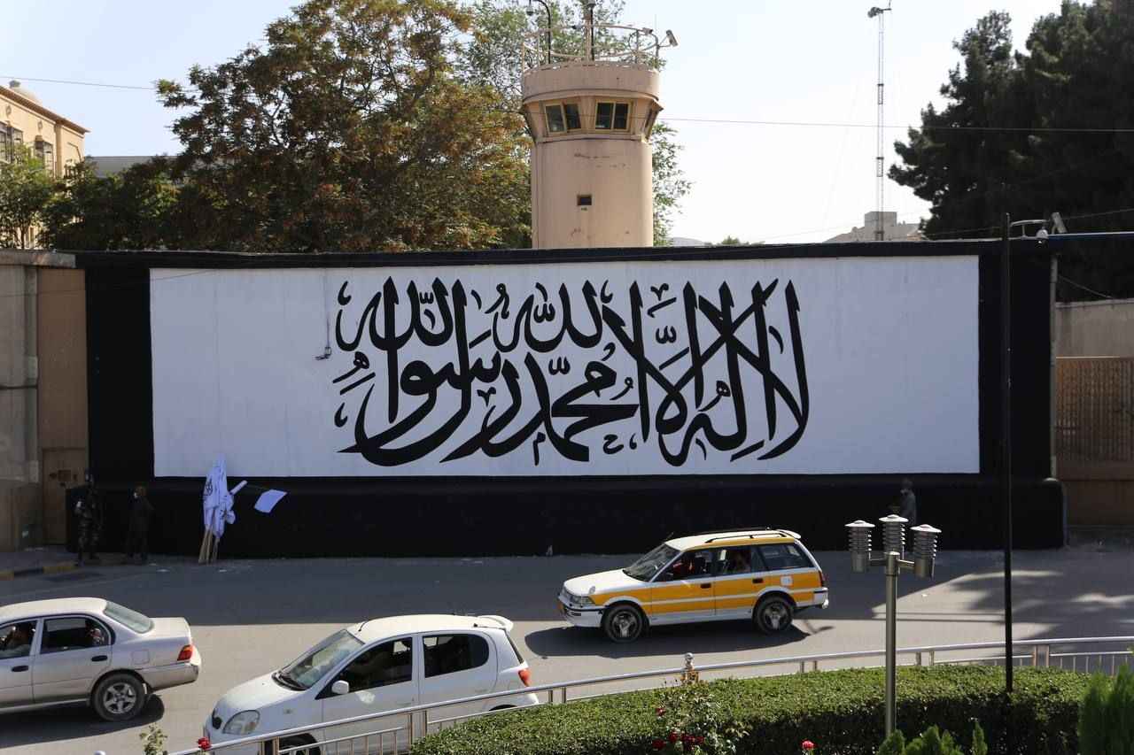 Afganistan’ın başkenti Kabil’de ABD’nin terk ettiği büyükelçilik binasının duvarına Taliban bayrağı resmedildi.