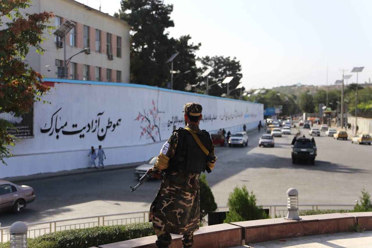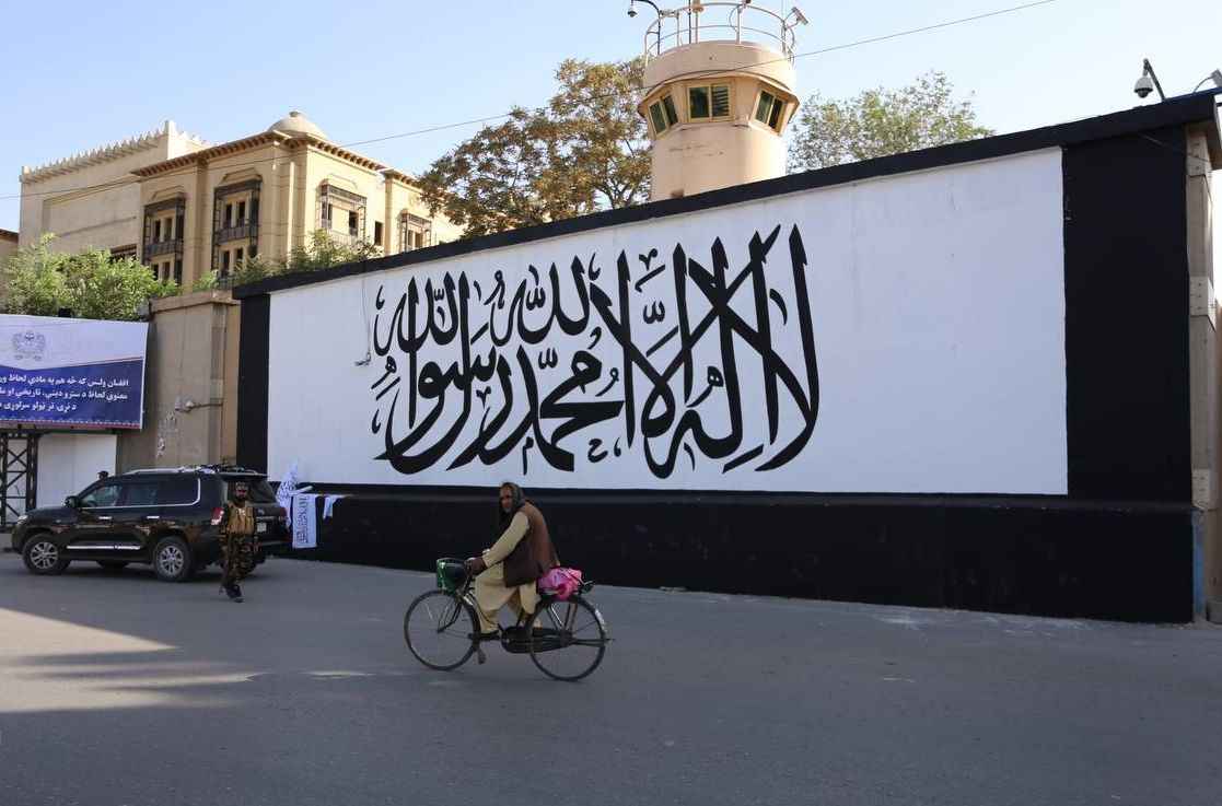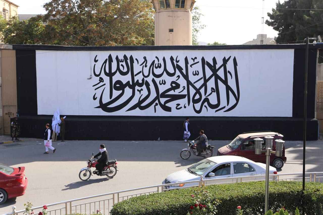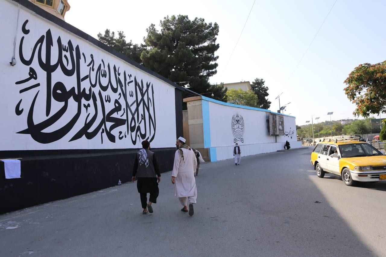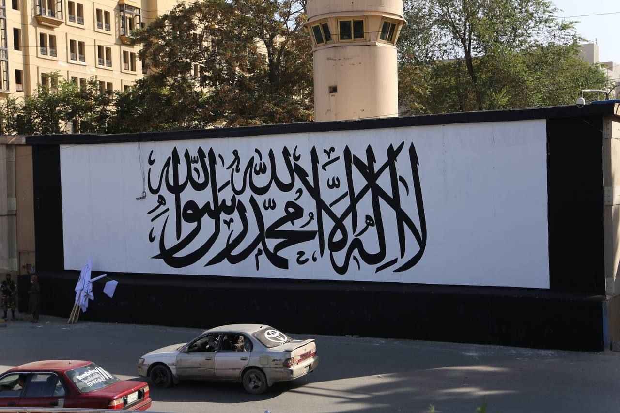Kabil'deki Hamid Karzai Uluslararası Havalimanı'na giden ana cadde üzerindeki Mesud kavşağı üzerinde bulunan ABD'nin Kabil Büyükelçiliğinin duvarları önce beyaza boyandı sonra Taliban lehine yazı ve motiflerle süslendi.