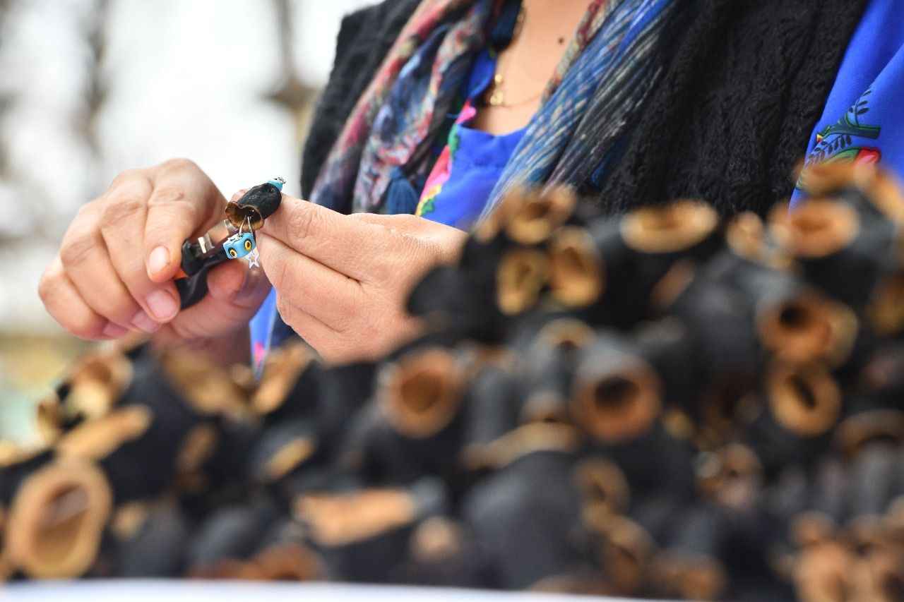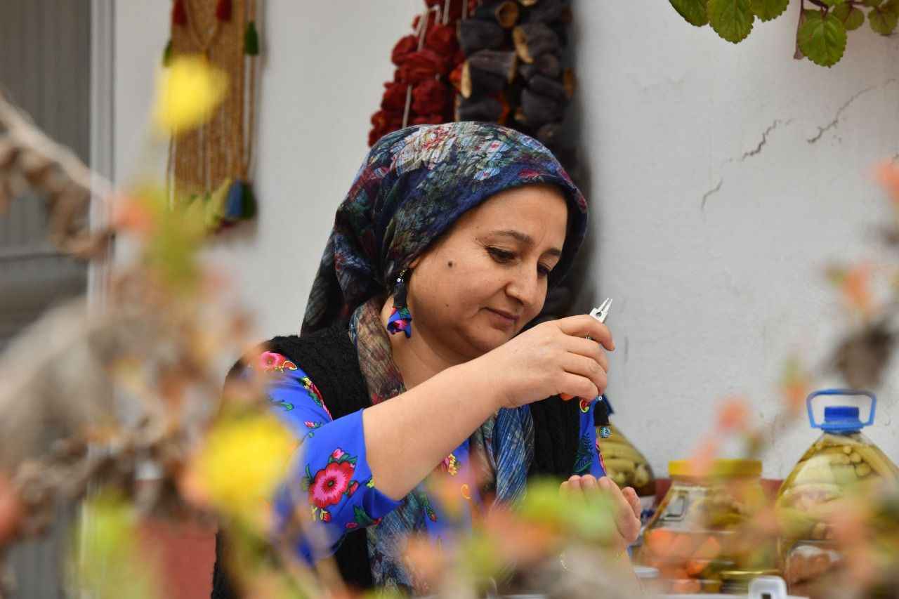 En küçüklerini topladıktan sonra oymaya başlıyorsunuz. Daha sonra kurutma aşaması var. Pense aracılığı ile boncuk ve çiçeklerle renklendiriyorum. Bir çift küpeyi 50 liraya satıyorum. Küpeyi alan müşterilerim tekrar sipariş veriyor. İleride domatesten takı tasarımı yapmak istiyorum.