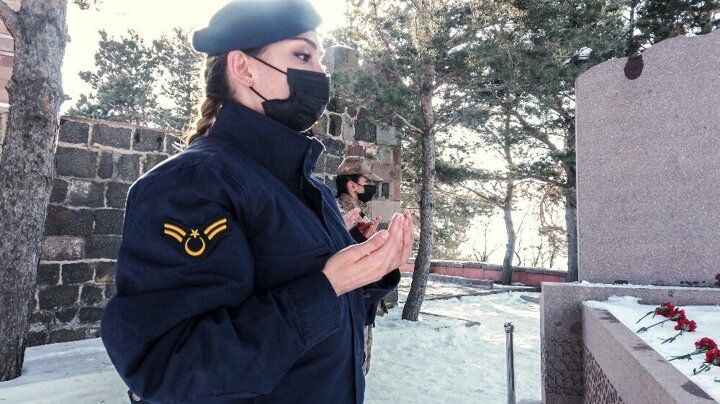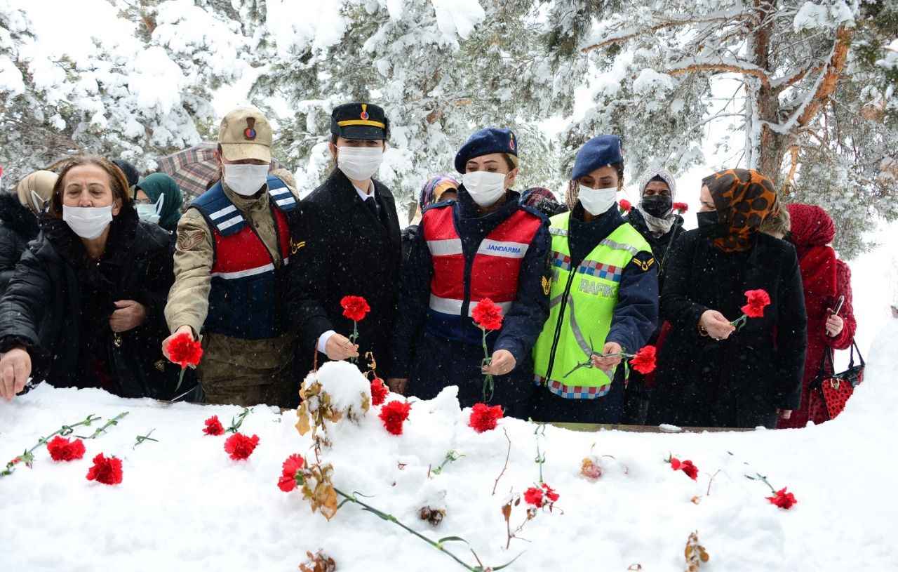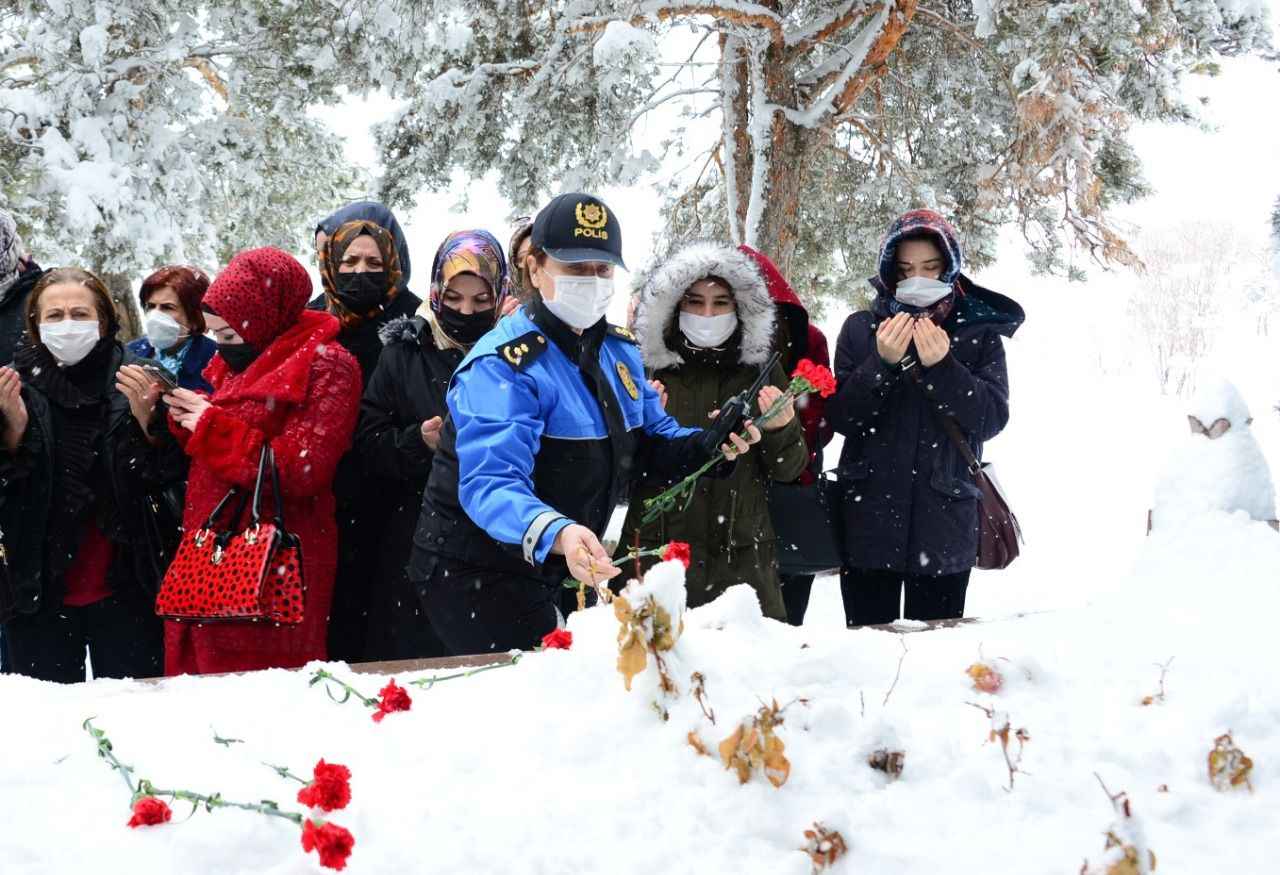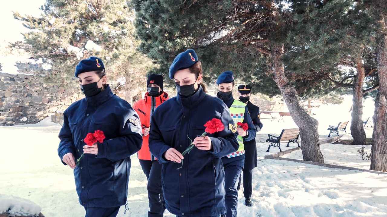 Genç yaşta gösterdiği fedakarlıklarıyla gönüllerde taht kuran ve Türk kadınının kahramanlığının simgesi olan Nene Hatun'un mezarına karanfil bırakan kadın jandarmalar, tüm şehitlerin mezarında dua okudu.