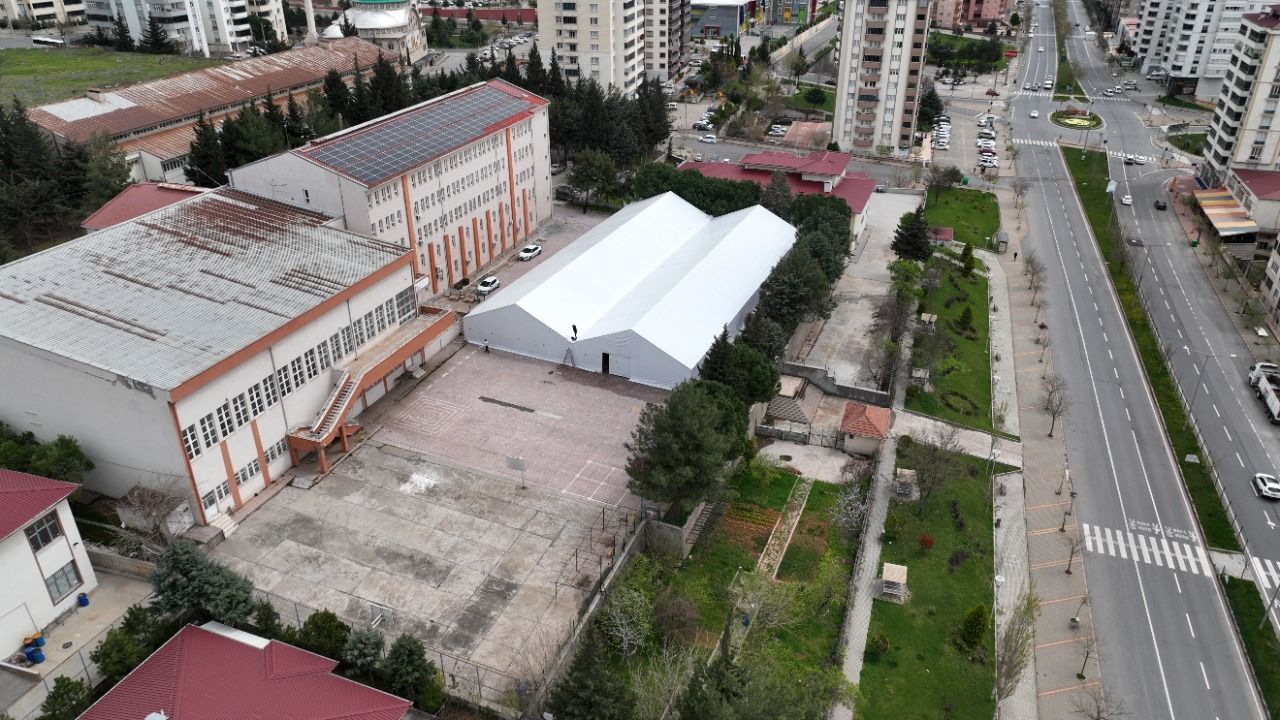 Depremin merkez üssü Kahramanmaraş'taki Şehit İdare Ataşe Galip Özmen Mesleki ve Teknik Anadolu Lisesi bahçesinde hizmete açılan 1500 metrekarelik çadırda, ihtiyaç sahibi depremzedelerin gıda, kıyafet, temizlik ve ev yaşam ürünleri ihtiyaçları karşılanıyor.