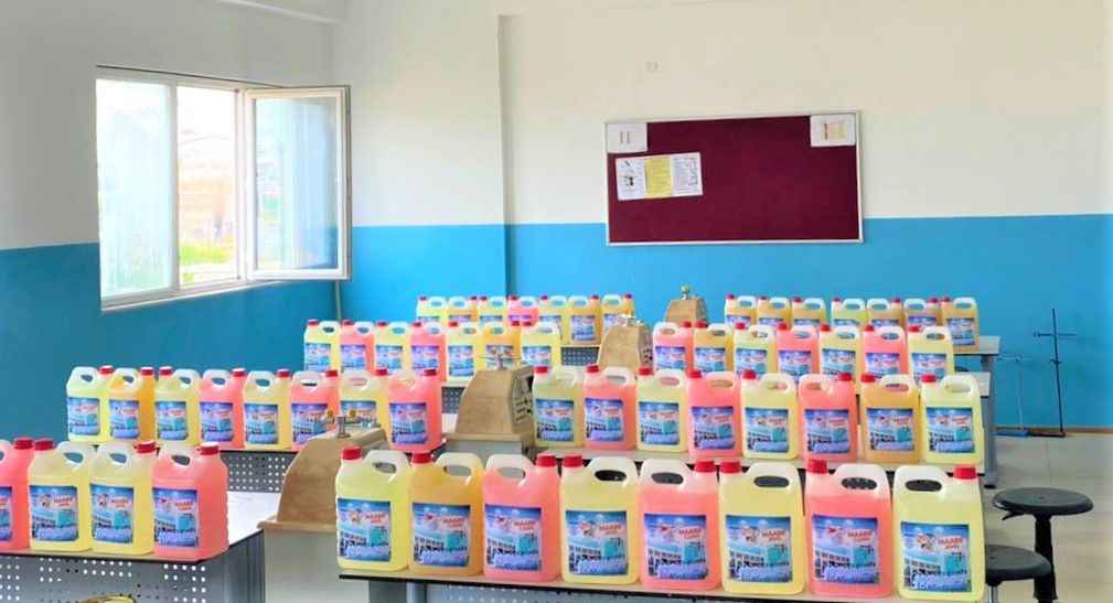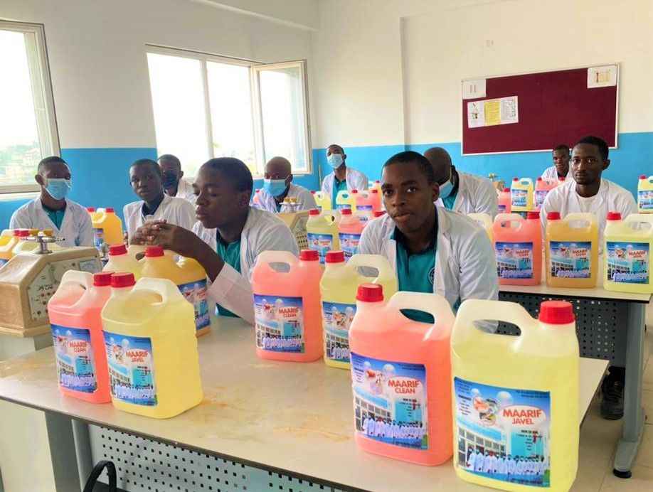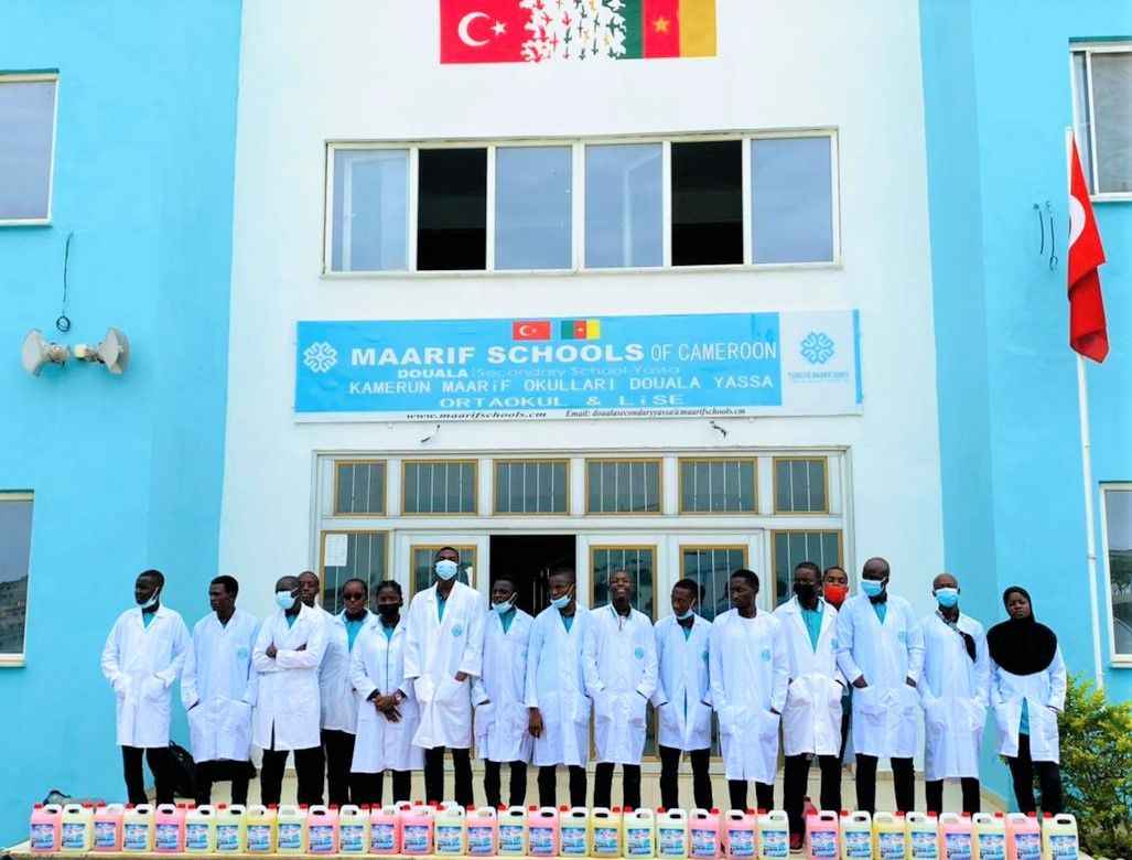 Kamerun Maarif Okulları’nda okuyan lise öğrencileri, Douala Yassa Kampüsü laboratuvarlarında kendi temizlik ürünlerini üretti.