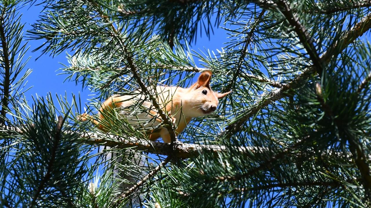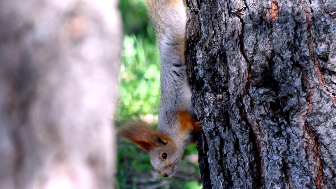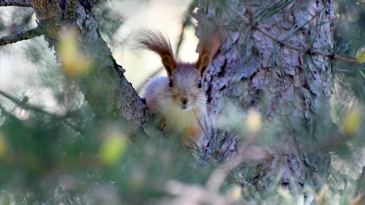 Kars'ın Sarıkamış ilçesinde hava sıcaklığının artmasıyla sarıçam ormanlarında kızıl sincaplar daha sık görülmeye başlandı.