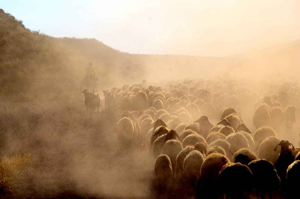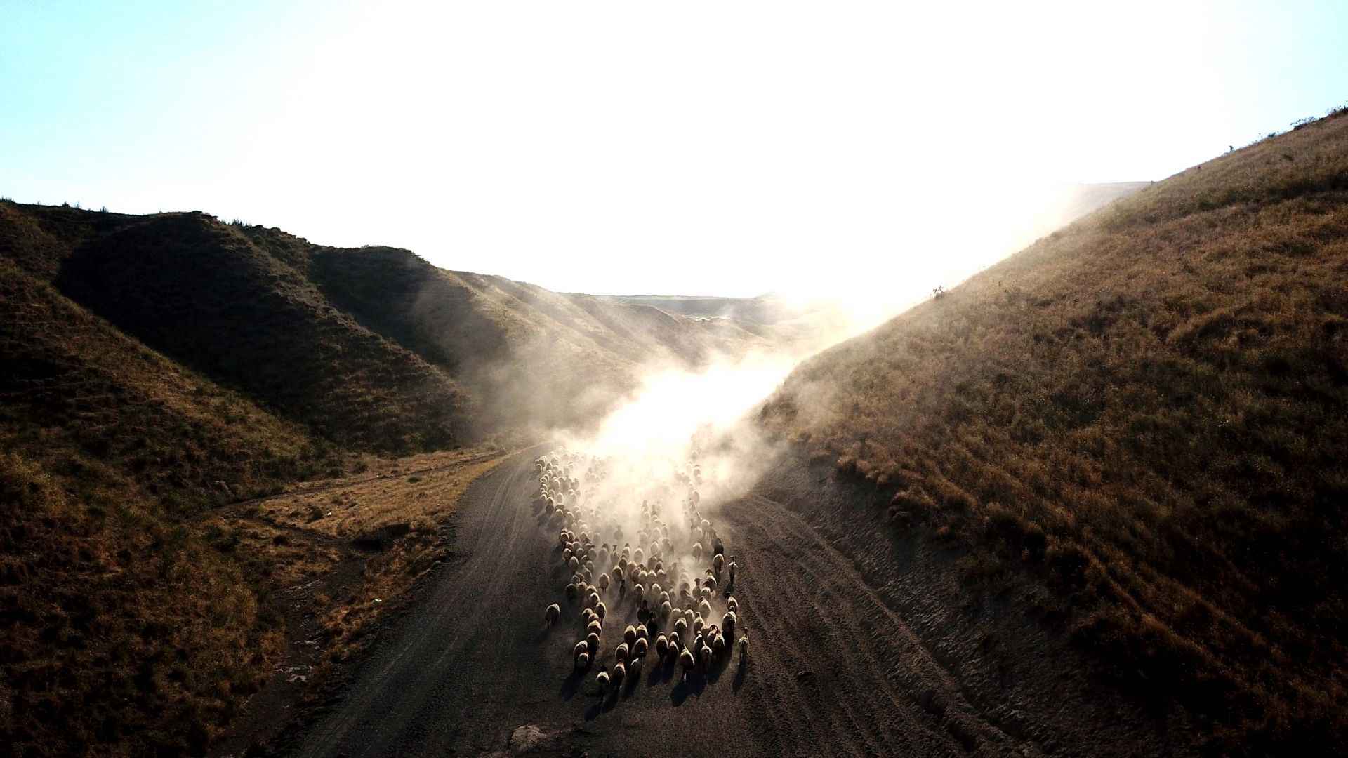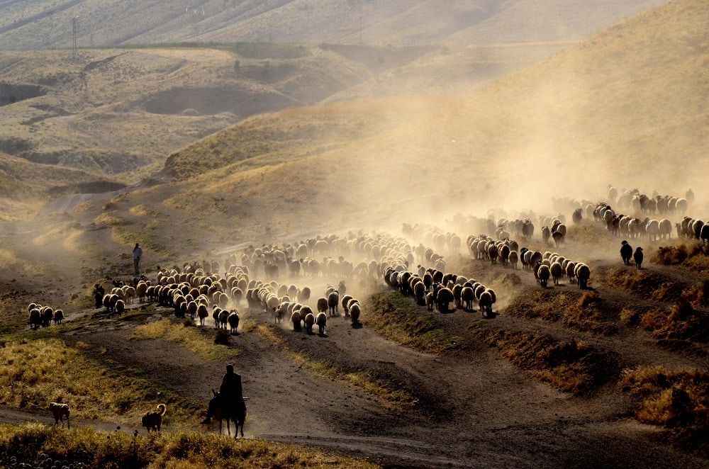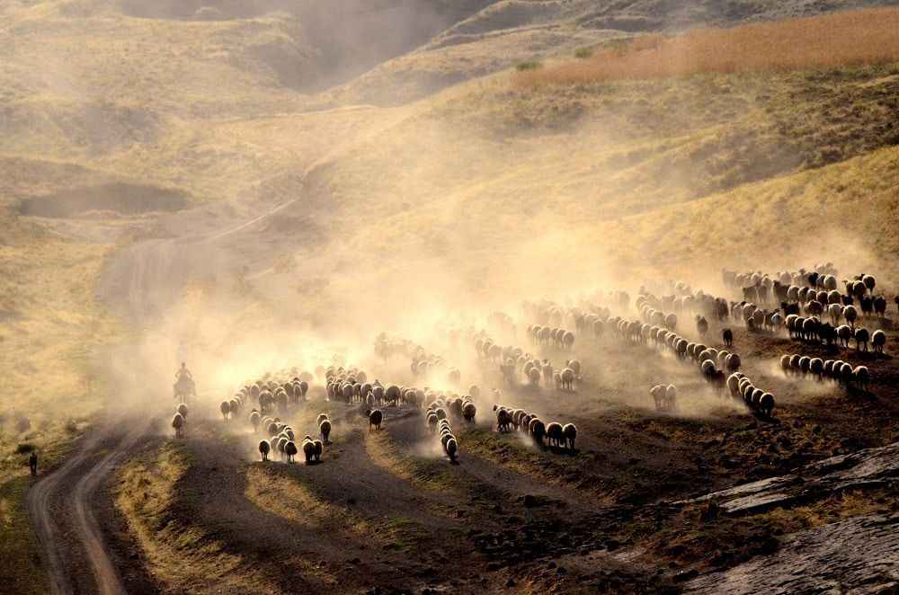 Nemrut Dağı eteklerindeki yaylalara hayvanlarını çıkaran köylüler, bu tozlu yolculuğu her gün gerçekleştiriyorlar. 15 kilometrelik yolu tamamlayan hayvanlar Van Gölü kıyısına gelerek susuzluklarını giderip sağımı bekliyor.