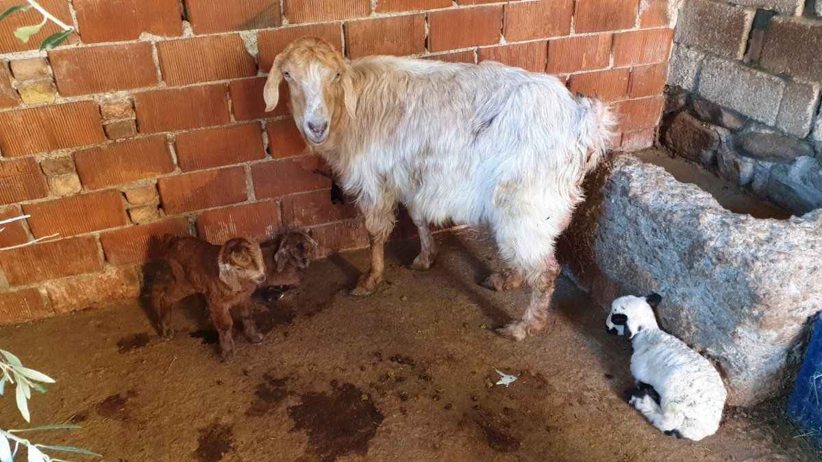 Akıllara durgunluk veren olayda biri kuzu, ikisi oğlak olmak üzere üçüz doğum yapan anne keçi sağlıklı şekilde dünyaya getirdiği yavruları ile görenleri hayrete düşürüyor.