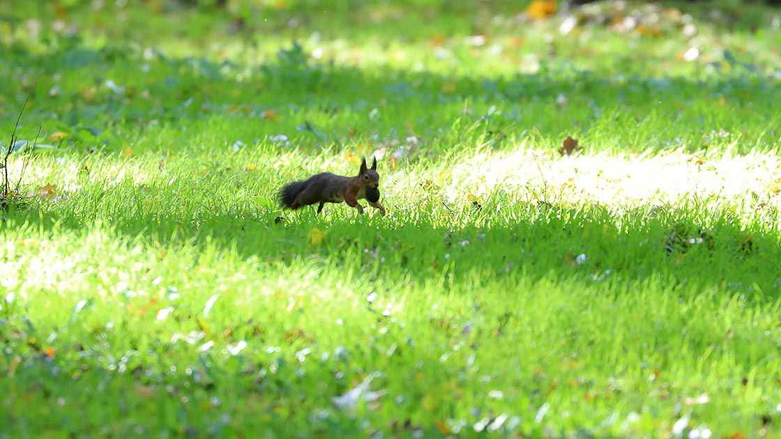 Sevimli sincapların yiyecek bulma telaşı, Kent Ormanı'nı ziyaret eden vatandaşlar için görsel bir şölene dönüşüyor.