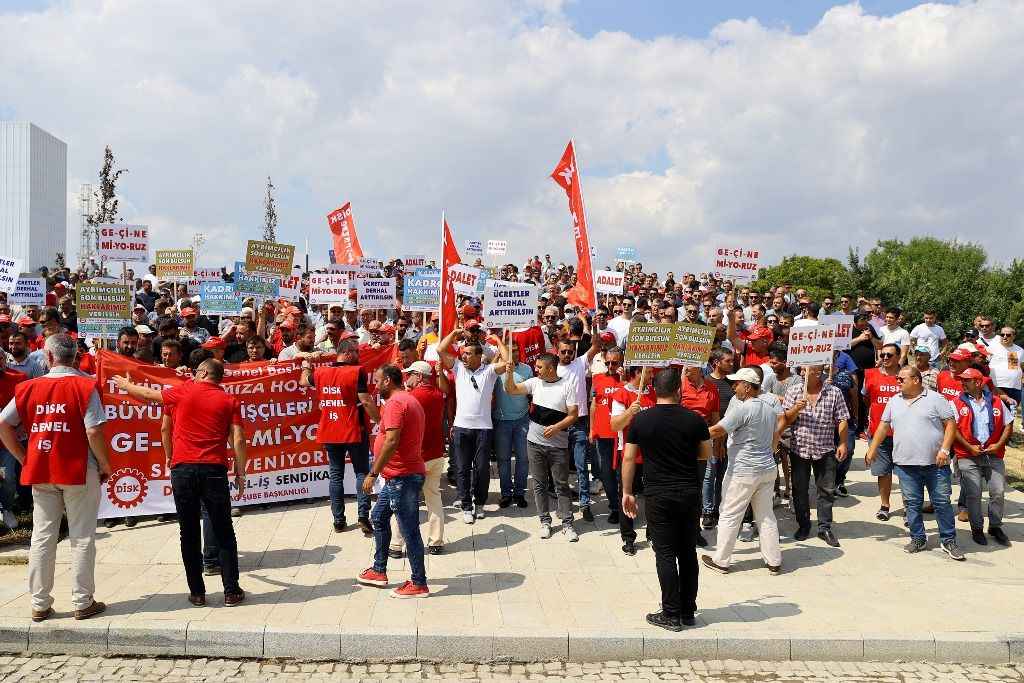 Öte yandan tören öncesi Tekirdağ Büyükşehir Belediyesi işçileri, ek zam talebiyle eylem yaptı.