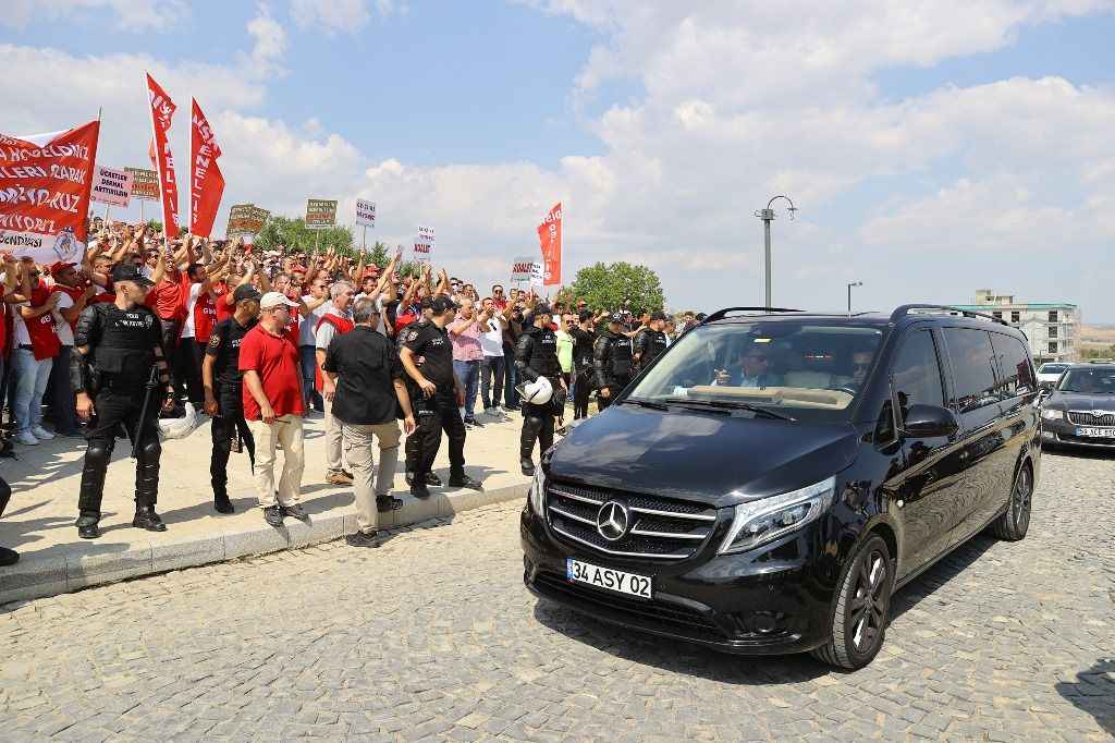 İşçiler CHP Genel Başkanı Kemal Kılıçdaroğlu’nun da katıldığı törende protesto gösterisi düzenledi.