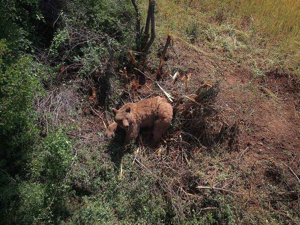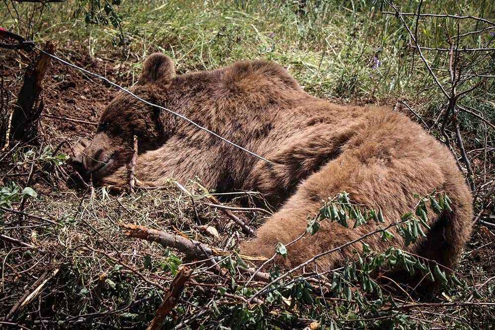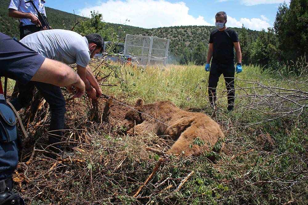 5 yaşında ve yaklaşık 200 kilo ağırlığında olduğu tahmin edilen dişi "Ursus arctos" cinsi ayı, veteriner hekim tarafından uyuşturucu iğneyle uyutuldu.