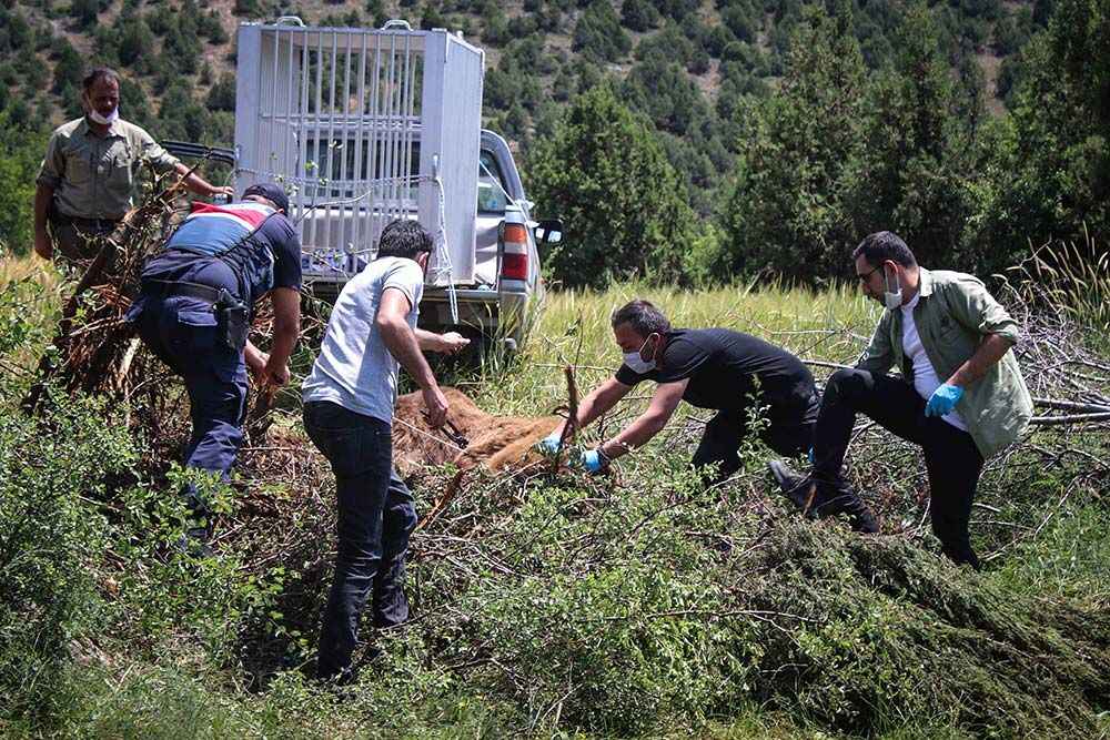 Çobanın ihbarı üzerine bölgeye İlçe Jandarma Komutanlığı, Kütahya Doğa Koruma ve Milli Parklar Şube Müdürlüğü ile Çukurca Belediyesi ekipleri gönderildi.