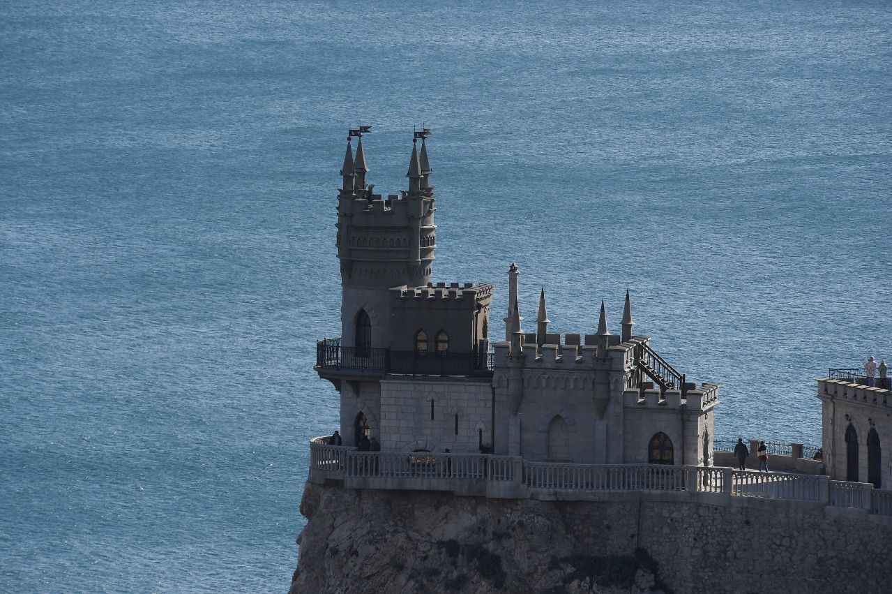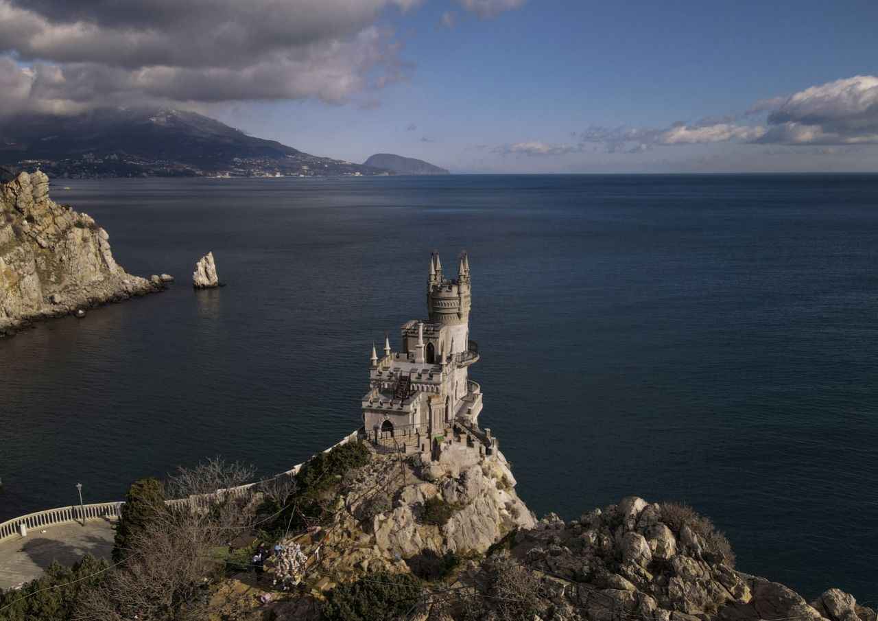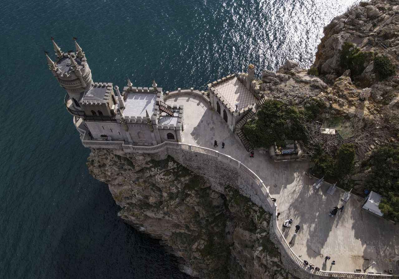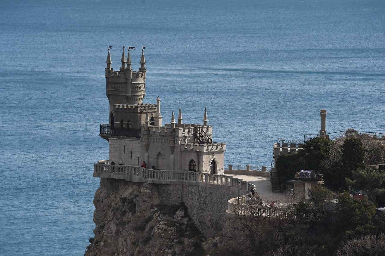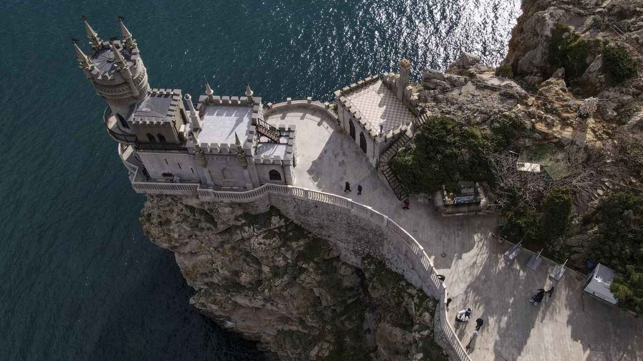 Kırım'da Gaspra kasabasında Aurora Yamacı üzerinde 1911-1912 yılları arasında inşa edilen 40 metre yüksekliğe sahip Kırlangıç Yuvası görüntülendi.