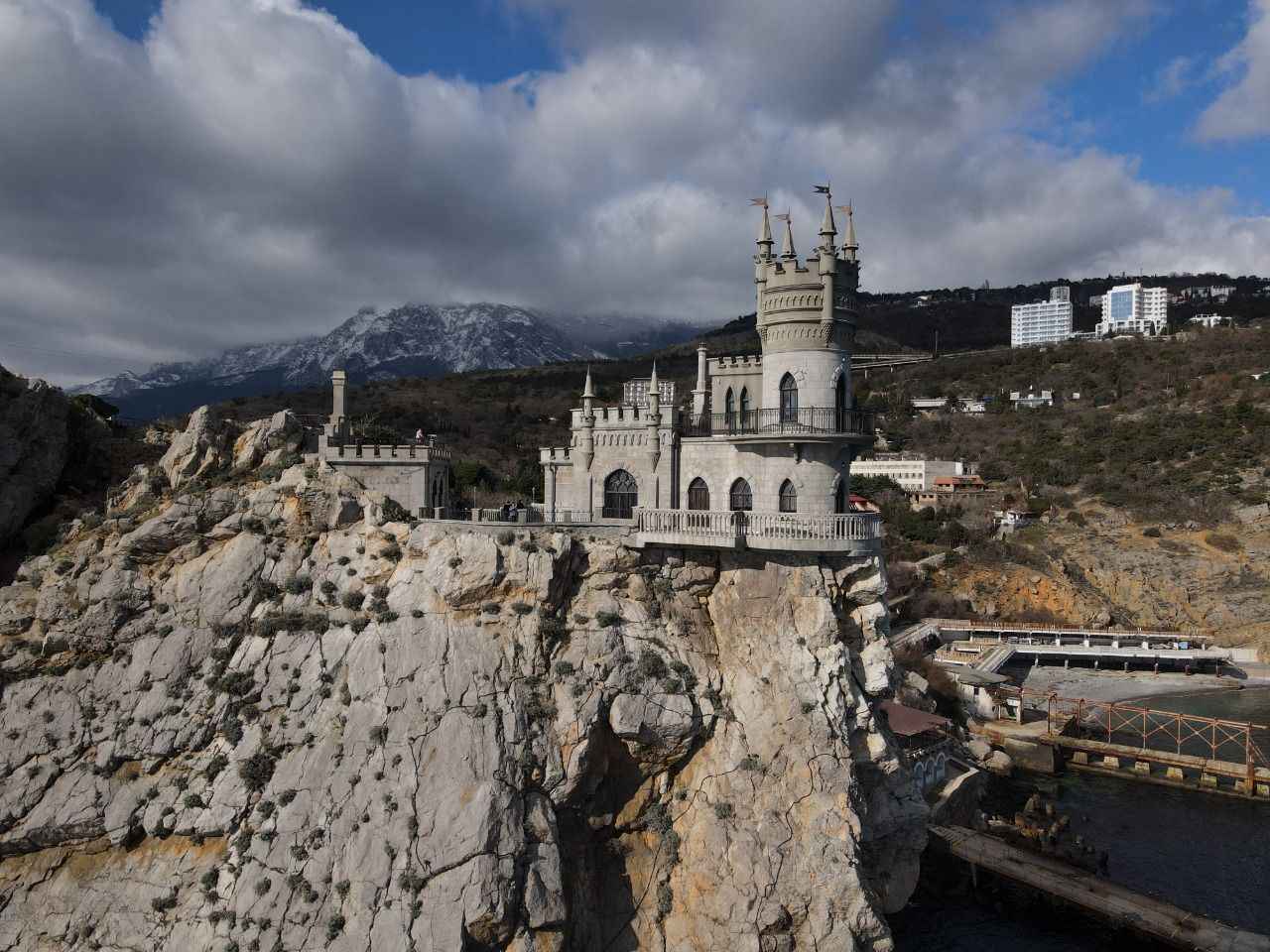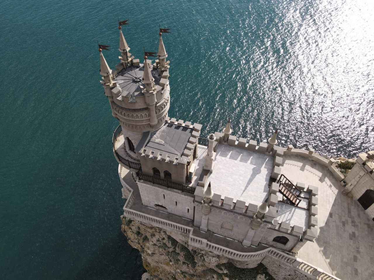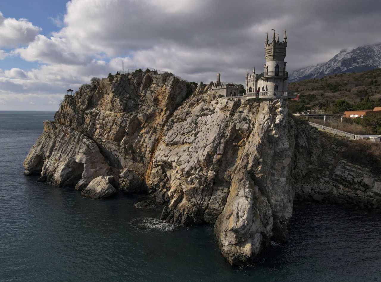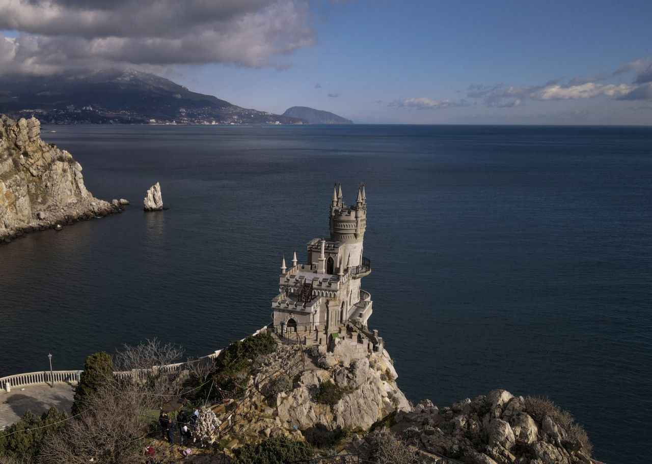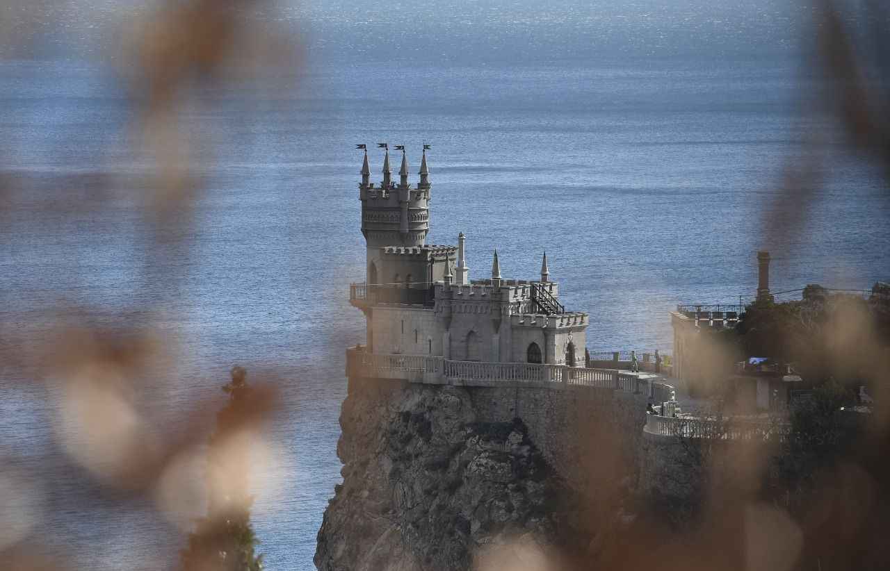 Kırım'da Gaspra kasabasında Aurora Yamacı üzerinde 1911-1912 yılları arasında inşa edilen 40 metre yüksekliğe sahip Kırlangıç Yuvası görüntülendi.
