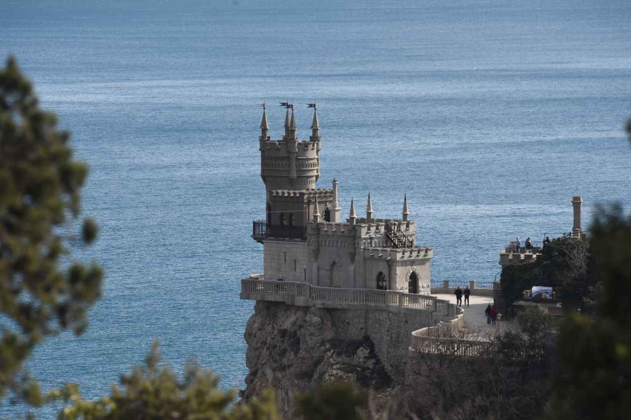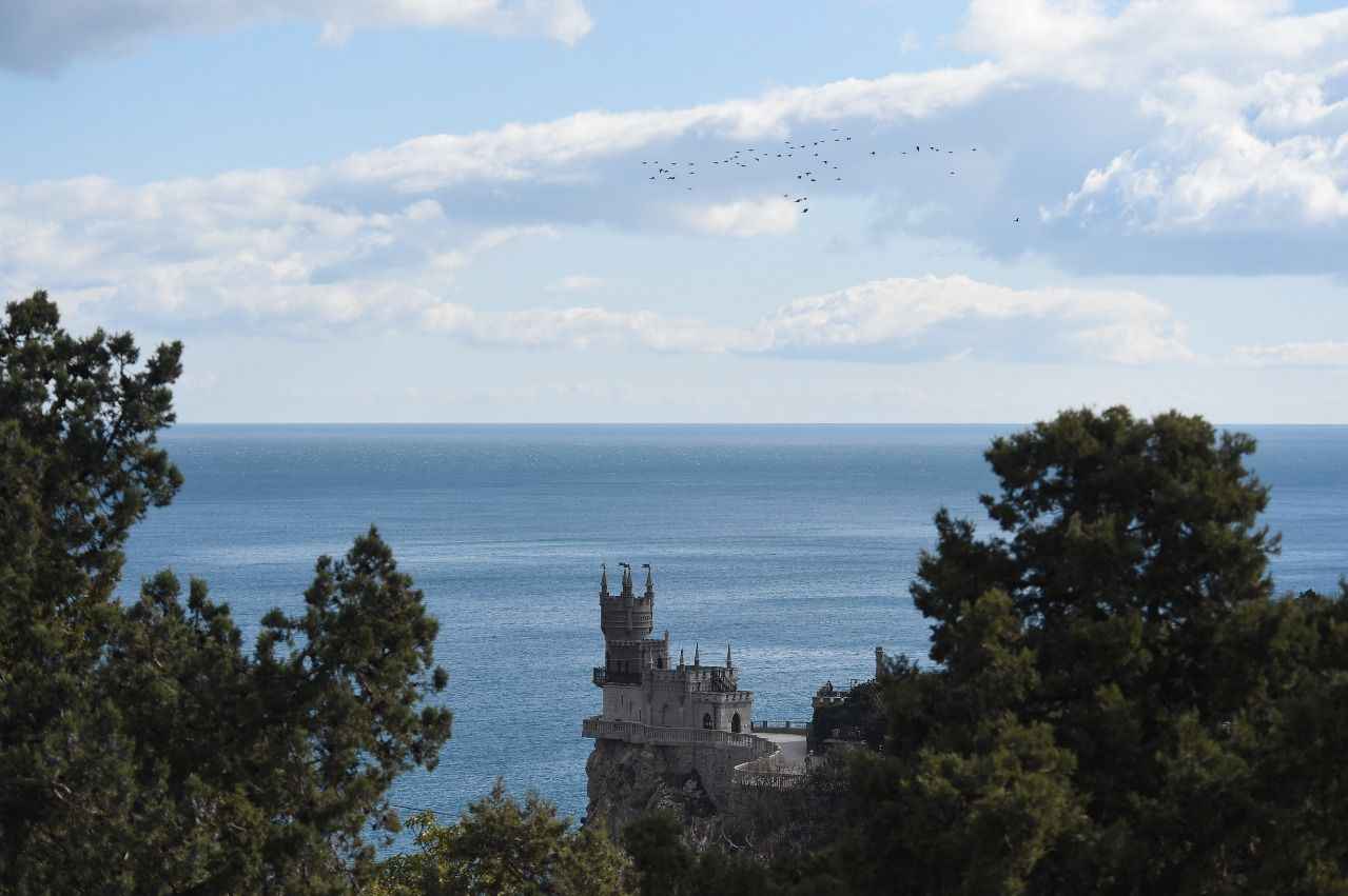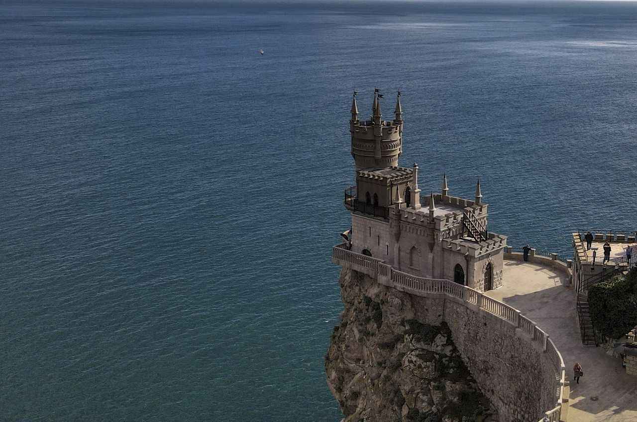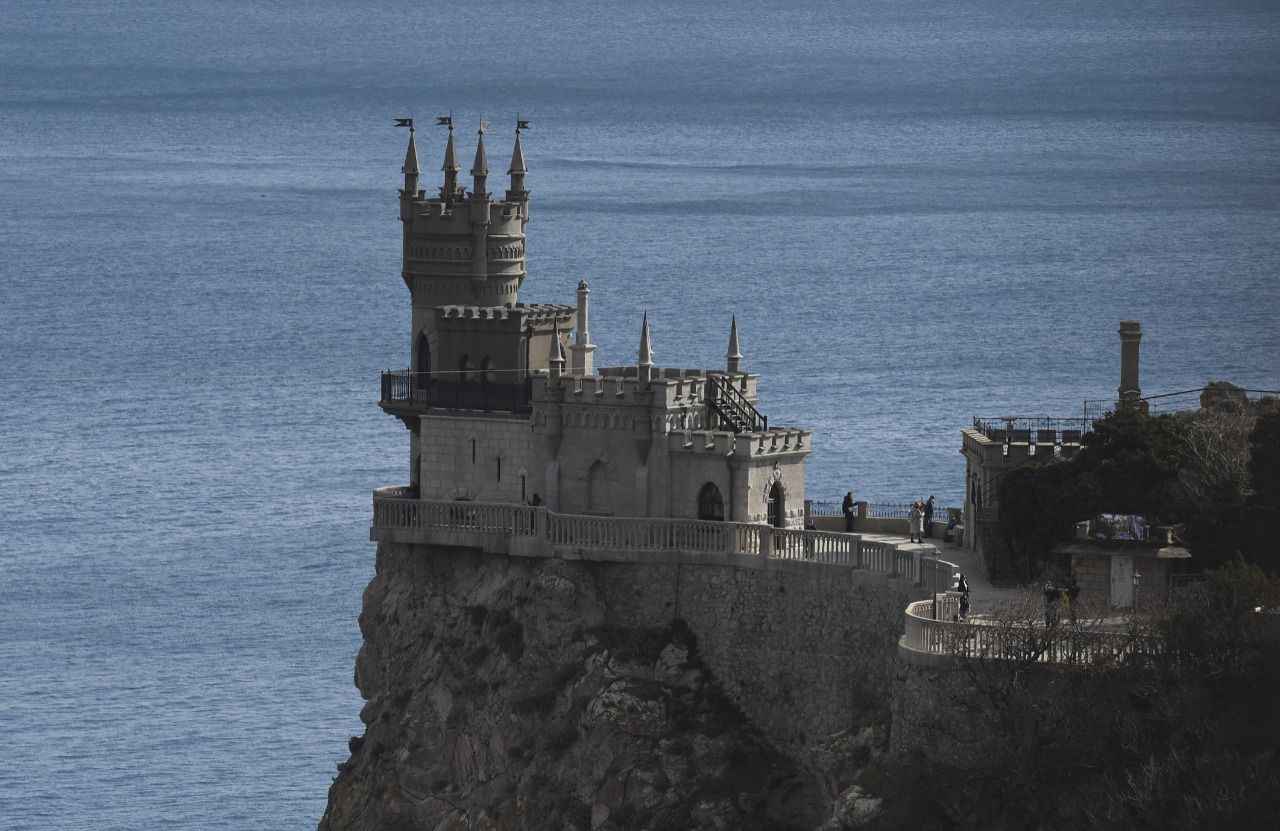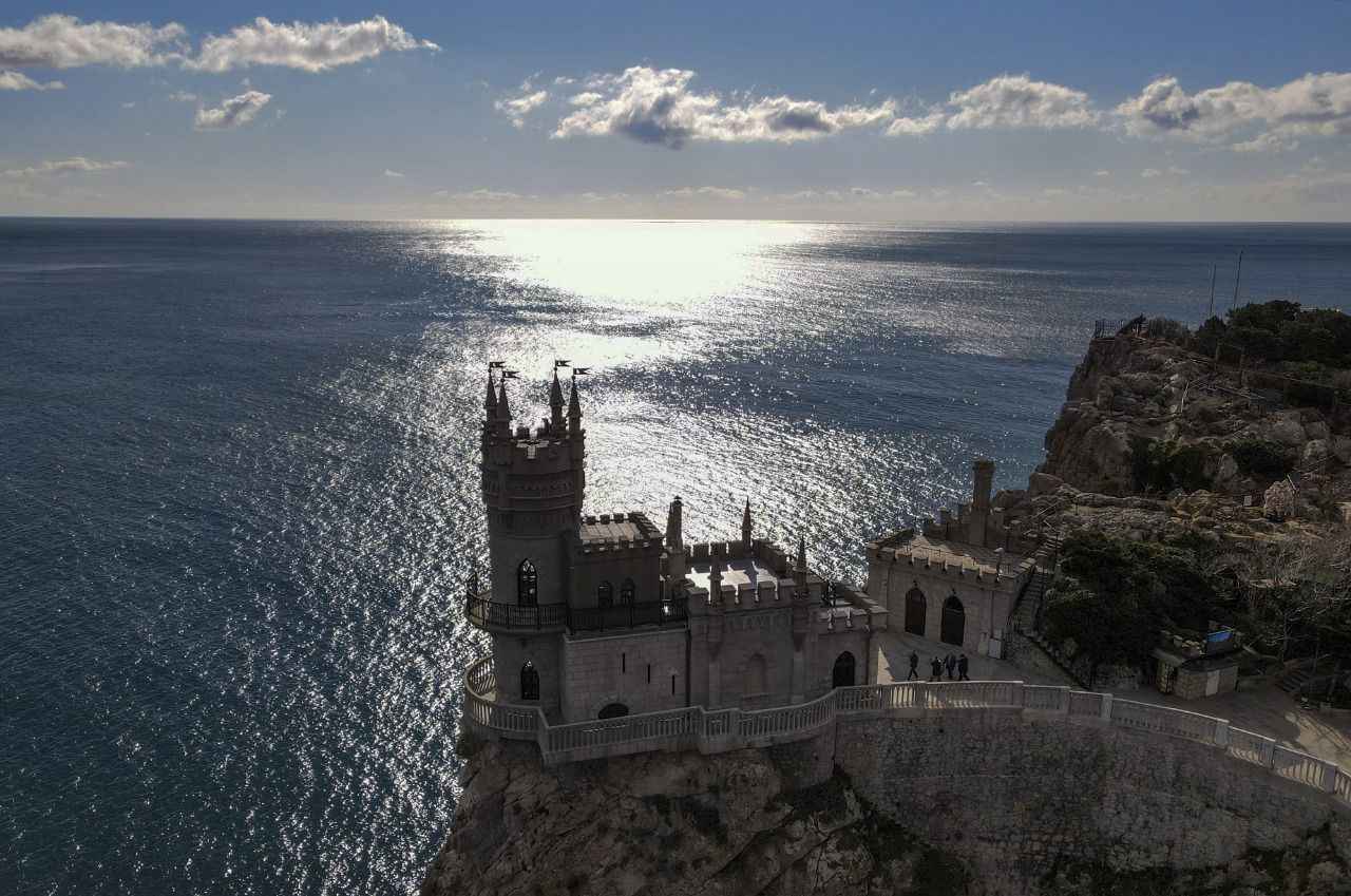 Kırım'da Gaspra kasabasında Aurora Yamacı üzerinde 1911-1912 yılları arasında inşa edilen 40 metre yüksekliğe sahip Kırlangıç Yuvası görüntülendi.