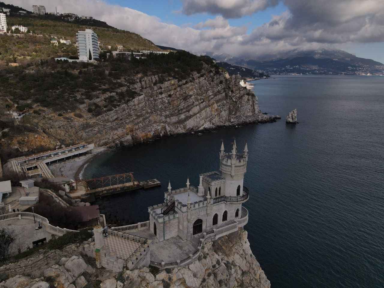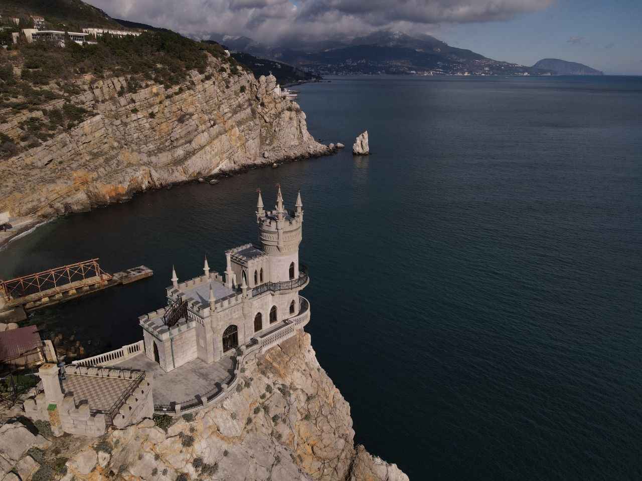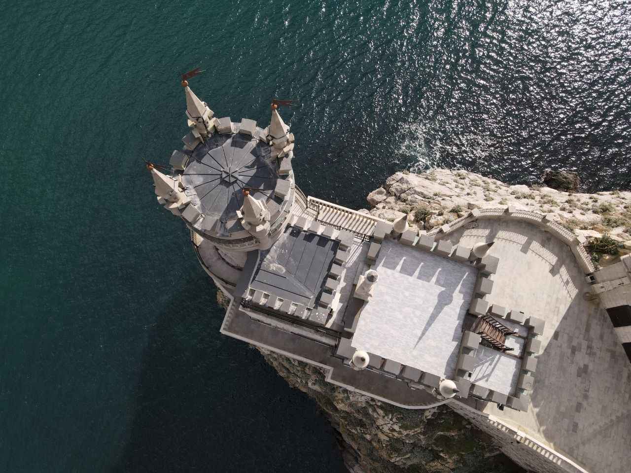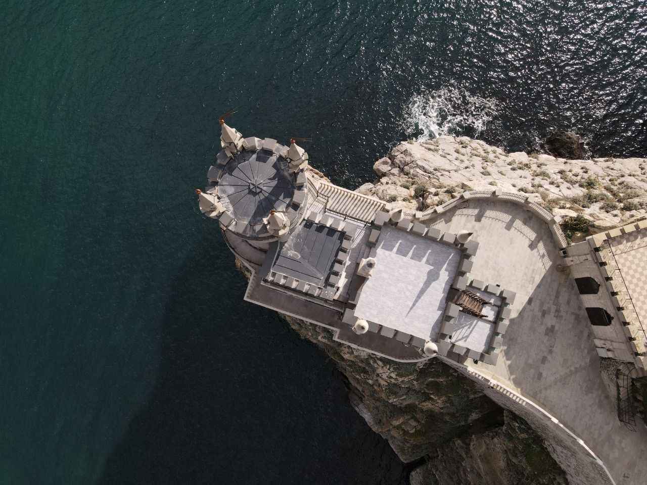 Kırım'da Gaspra kasabasında Aurora Yamacı üzerinde 1911-1912 yılları arasında inşa edilen 40 metre yüksekliğe sahip Kırlangıç Yuvası görüntülendi.