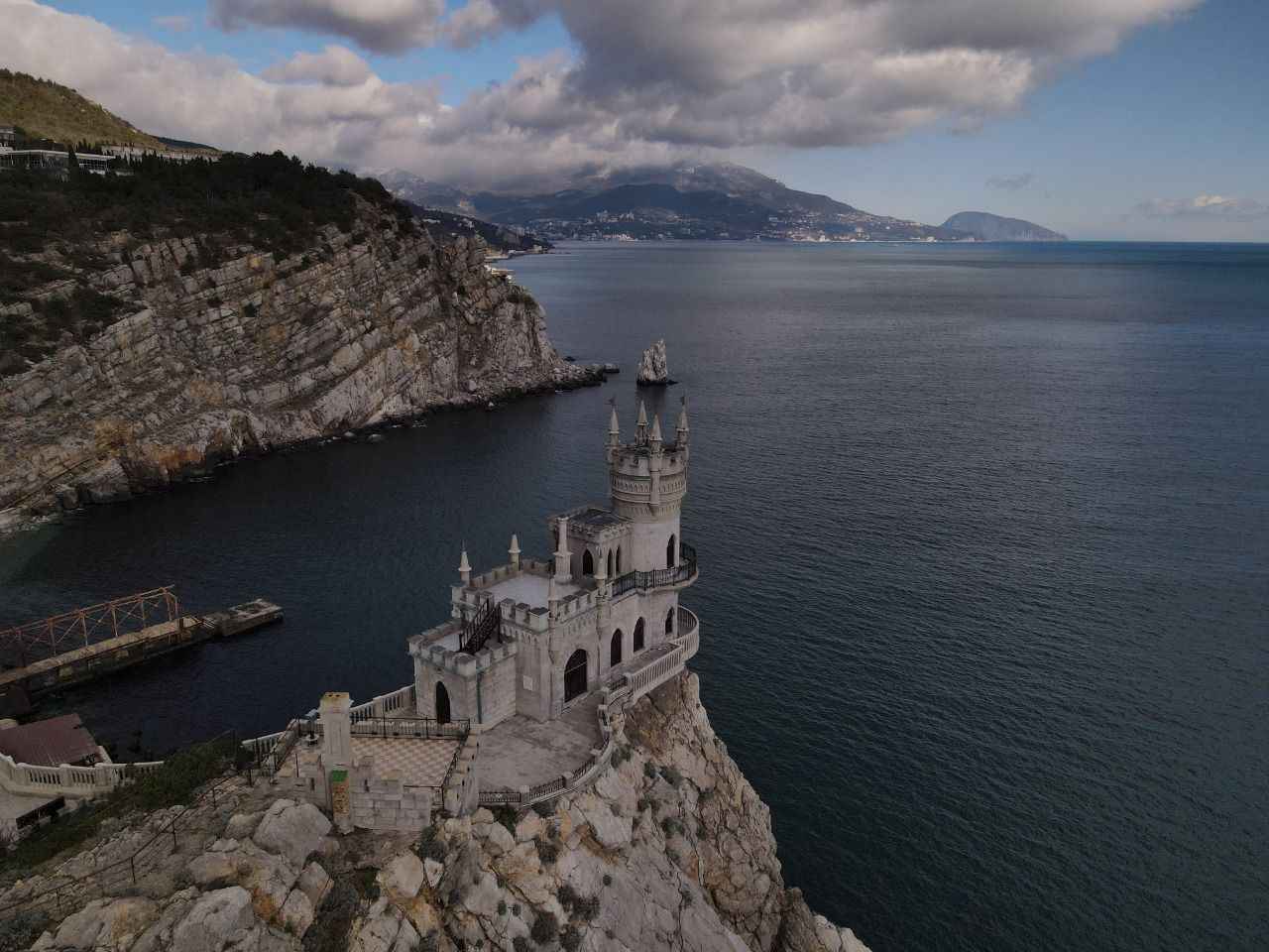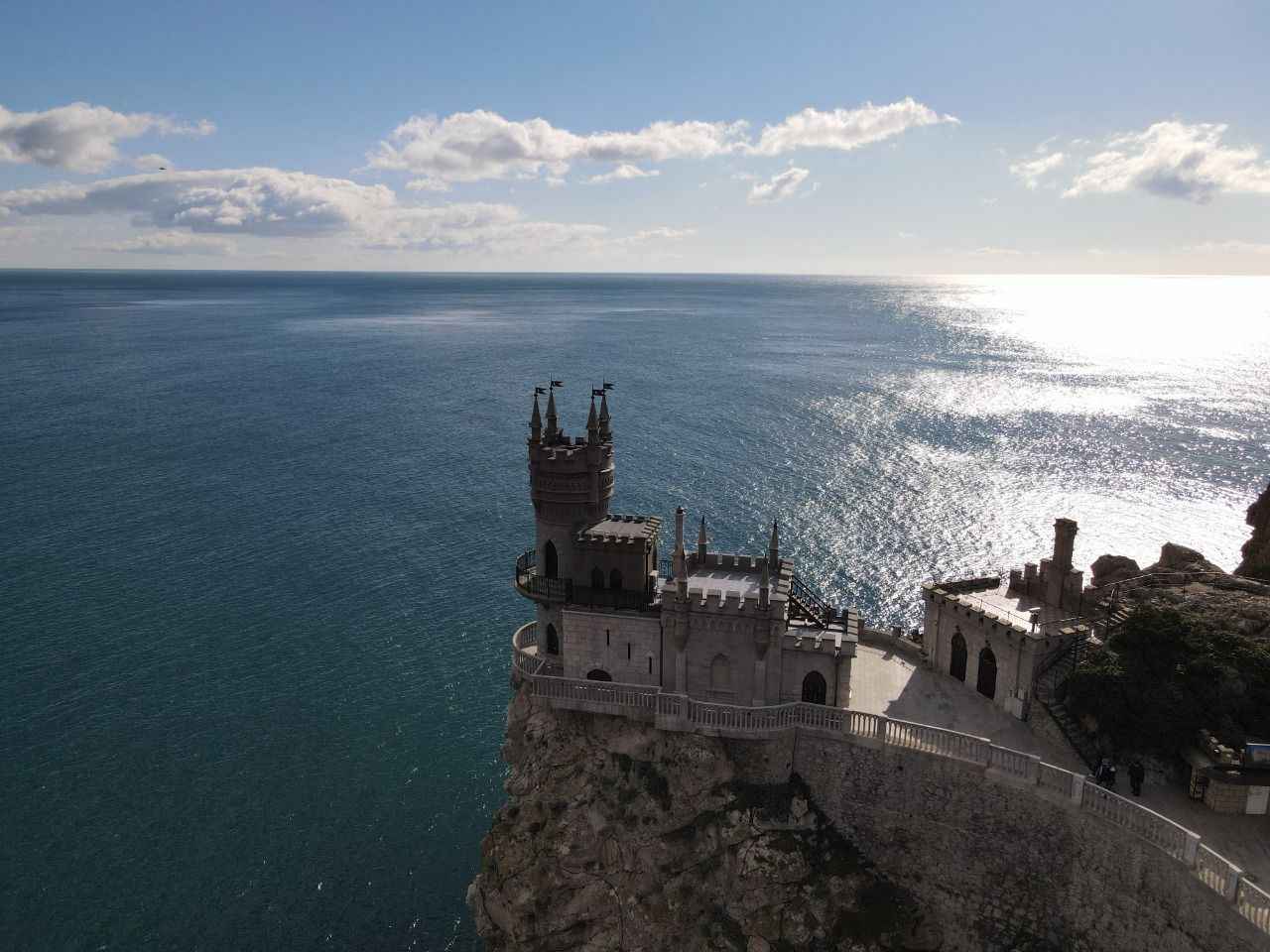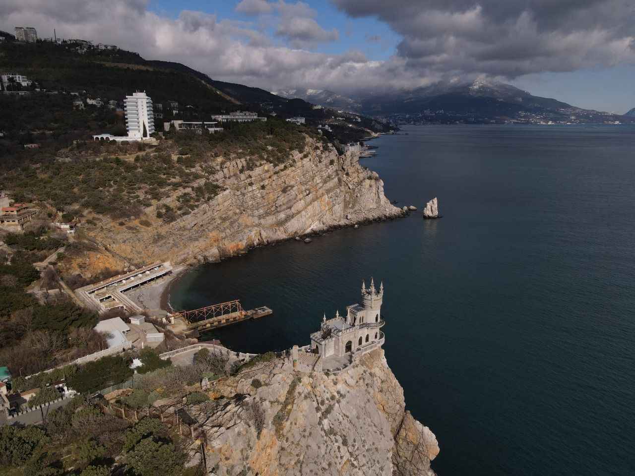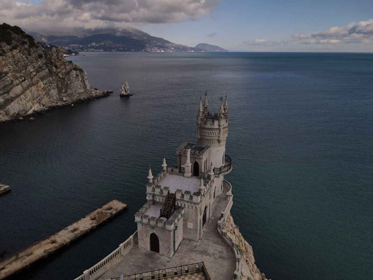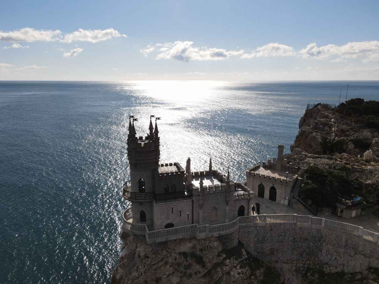 Kırım'da Gaspra kasabasında Aurora Yamacı üzerinde 1911-1912 yılları arasında inşa edilen 40 metre yüksekliğe sahip Kırlangıç Yuvası görüntülendi.