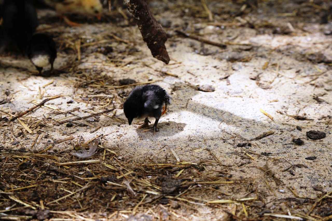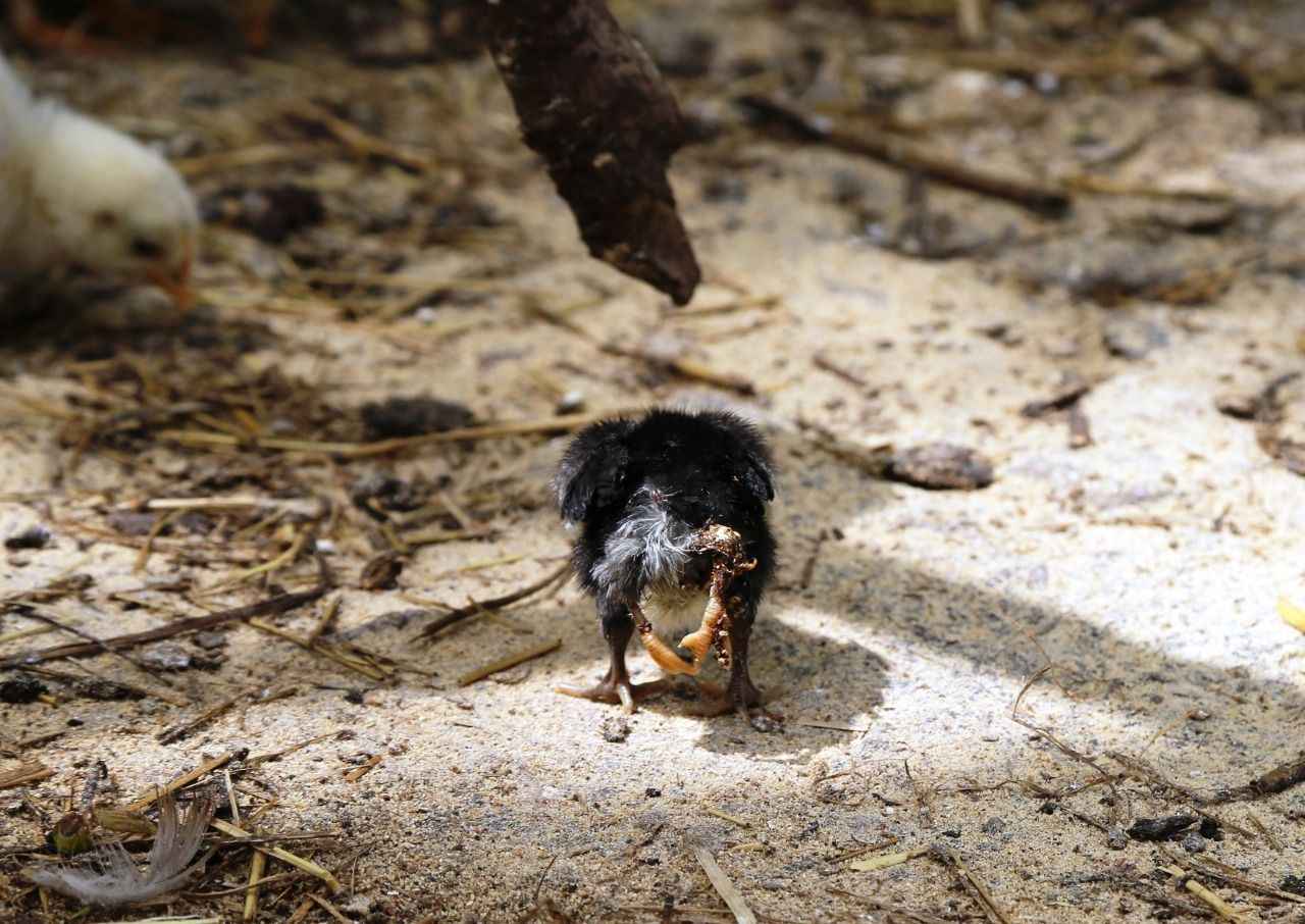 Civciv, iki bacağı üzerinde serbestçe gezinip tek başına beslenebiliyor.