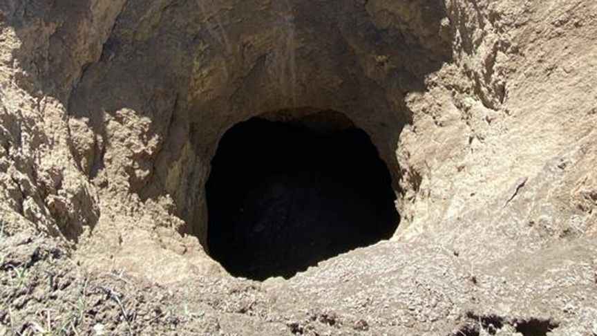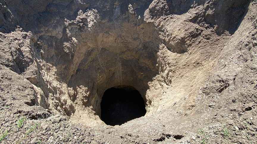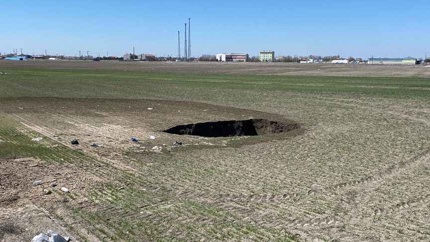 İlçeye bağlı İsmil Mahallesi'nde yaşayan bir çiftçi, çalışmak için tarlasına gittiğinde obrukla karşılaştı.