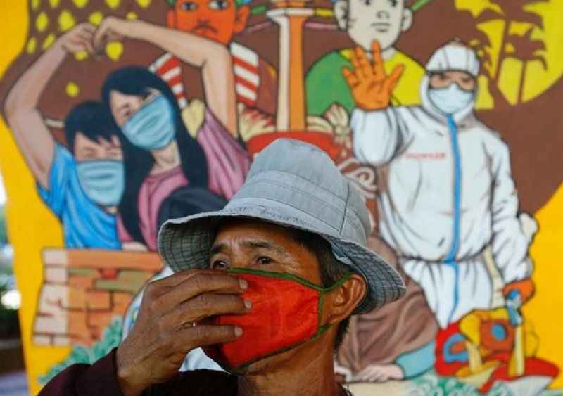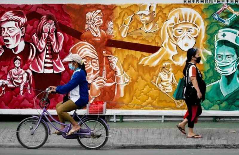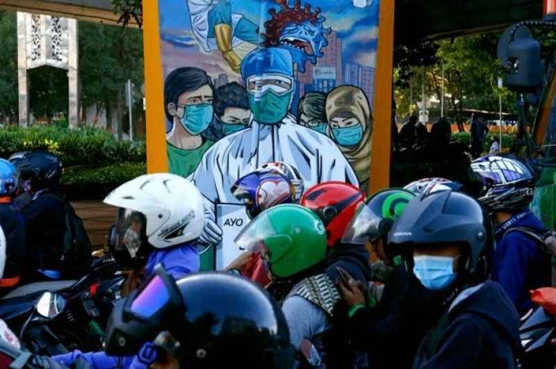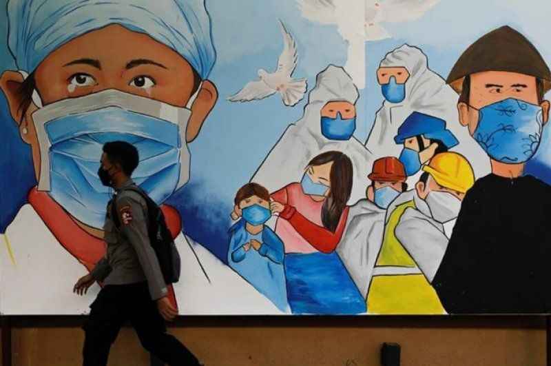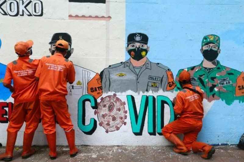 JAKARTA, ENDONEZYA 29 Temmuz 2021- Endonezya'nın Jakarta kentinde vakalar artarken belediye çalışanları koronavirüs hakkında farkındalığı teşvik eden duvar resmini bitiriyor.