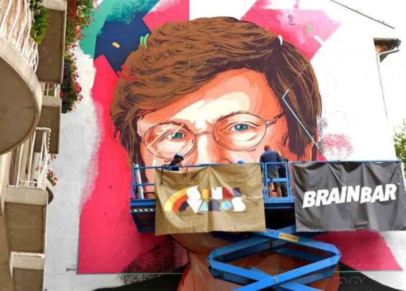 BUDAPEŞTE, MACARİSTAN 28 Ağustos 2021- Bir ressam Budapeşte, Macaristan'da koronavirüs ile savaşan mRNA aşılarının temelini atan Macaristan doğumlu bilim insanı ve BioNTech kıdemli başkan yardımcısı Katalin Kariko'nun portresini gösteren bir duvar resmine son rötuşlar yapıyor.